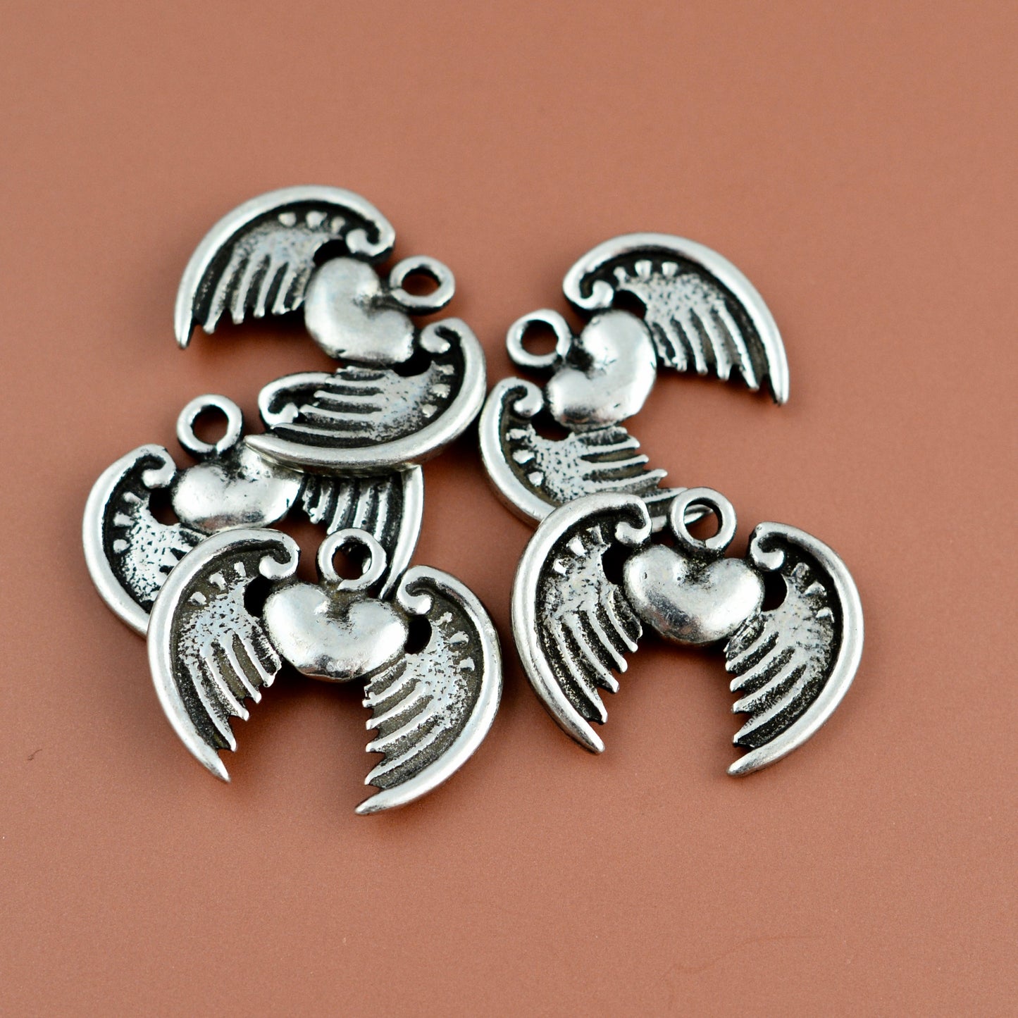 Add Winged Flying Heart Pendant, Antiqued Silver Pewter Charm, Artisan Jewelry Findings Components, PW-6343 to the cart