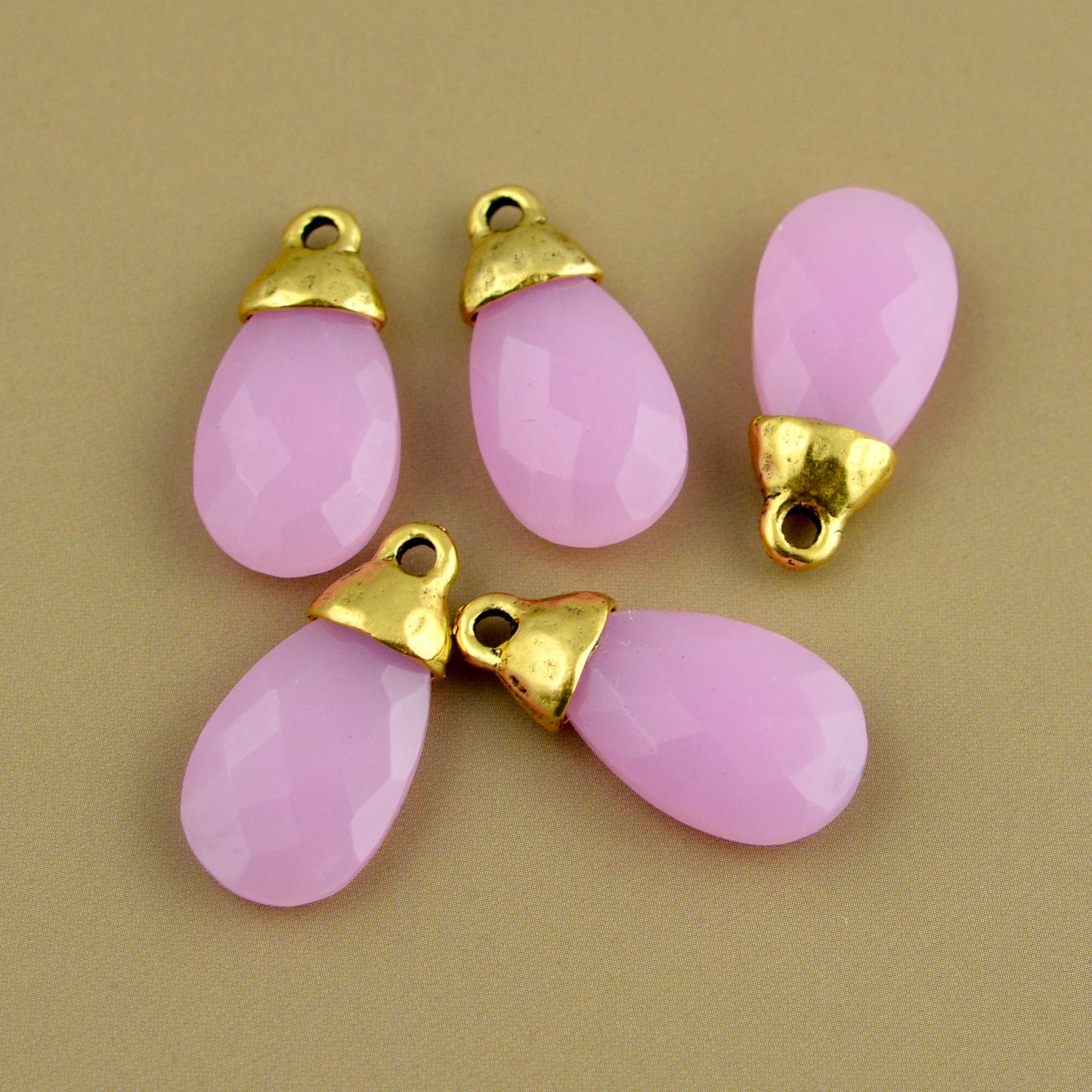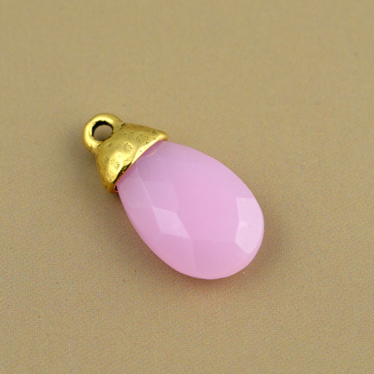 Add Pastel Pink Chalcedony Quartz Pear Faceted Briolette Drop Pendant with Antique Gold Bead Cap, Gemstone, Jewelry Making Artisan Findings, GL-S049 to the cart