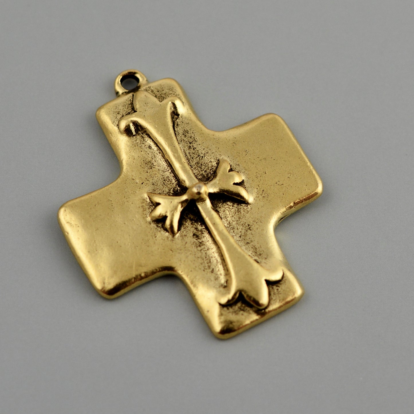 Add Large Cross with Floral Design, Gold Religious Pendant, Jewelry Making Supplies, GL-6350 to the cart