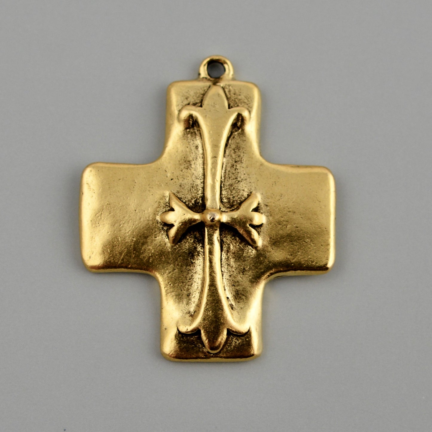 Large Cross with Floral Design, Gold Religious Pendant, Jewelry Making Supplies, GL-6350