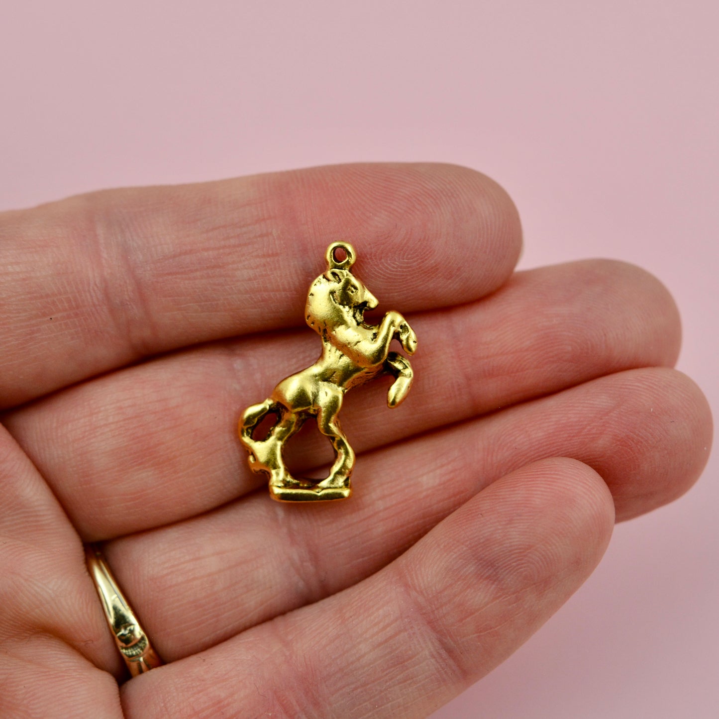 Add Horse Charm, Gold Animal Pendant, Jewelry Making Charm Bracelet Supplies, GL-6361 to the cart