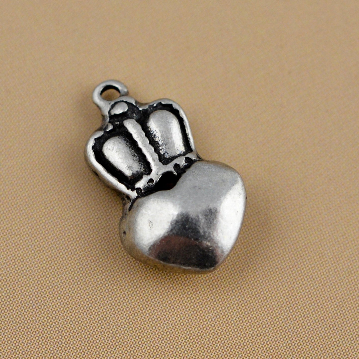 Add Crowned Heart Pendant, Antiqued Silver Charm, Artisan Jewelry Findings Components, PW-6345 to the cart