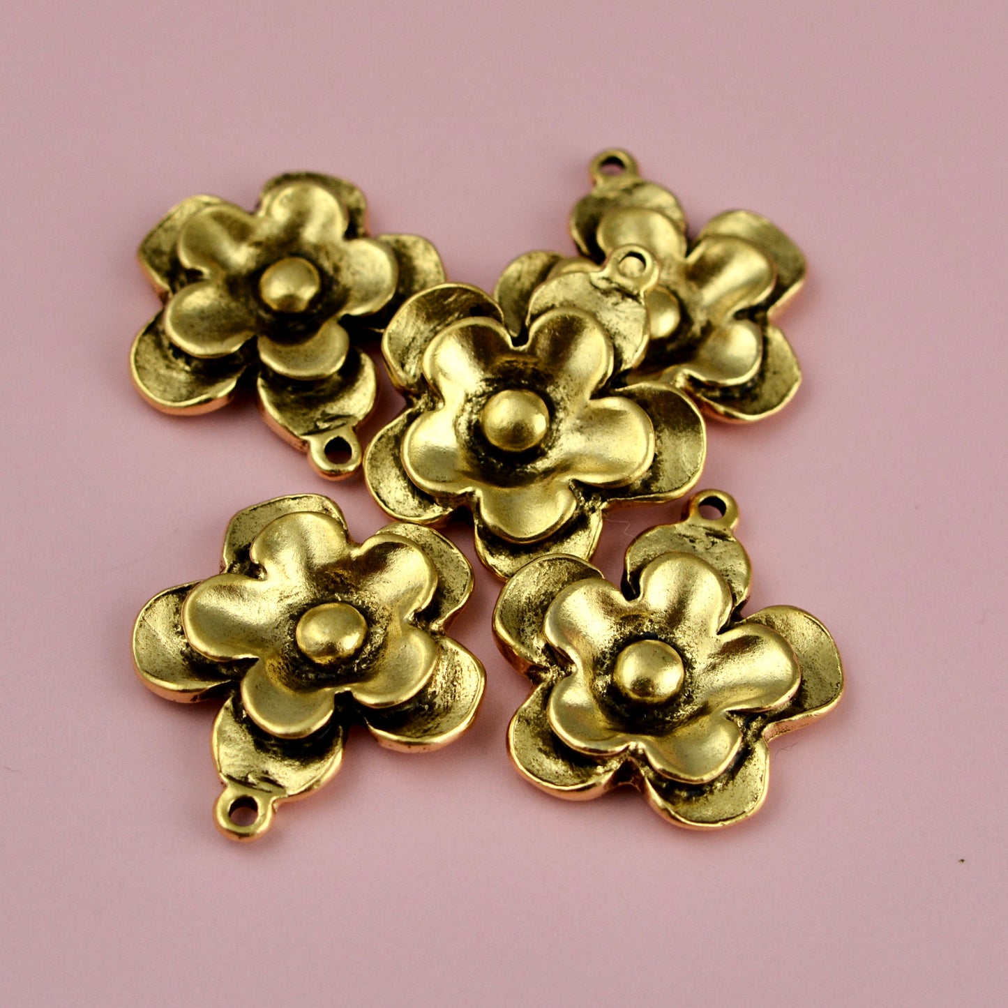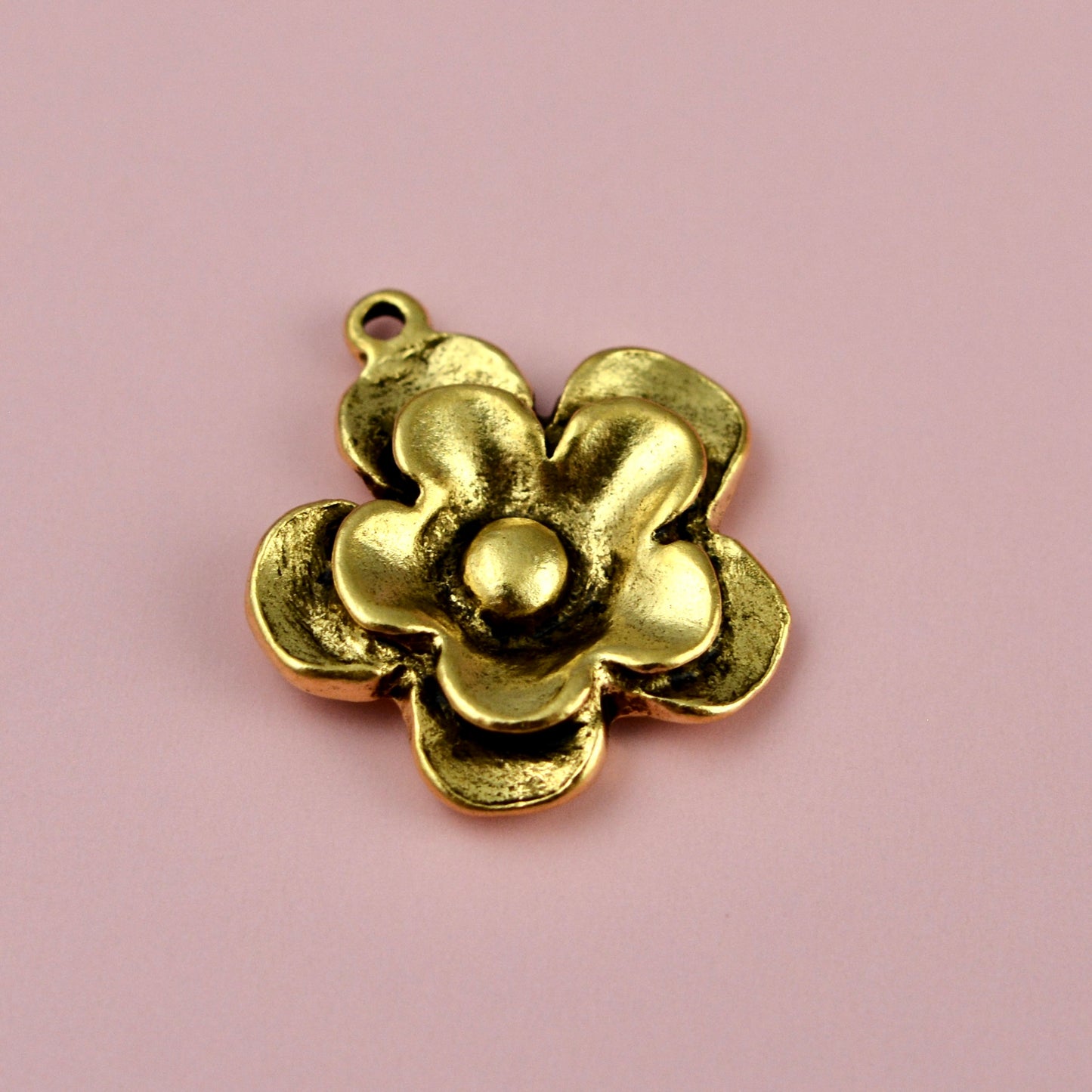 Flower Power Charm, Antiqued Gold Pendant for Jewelry Making, GL-6357