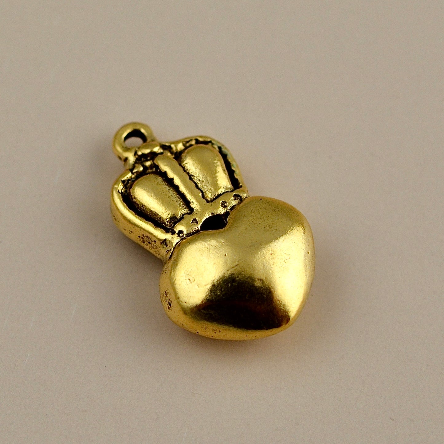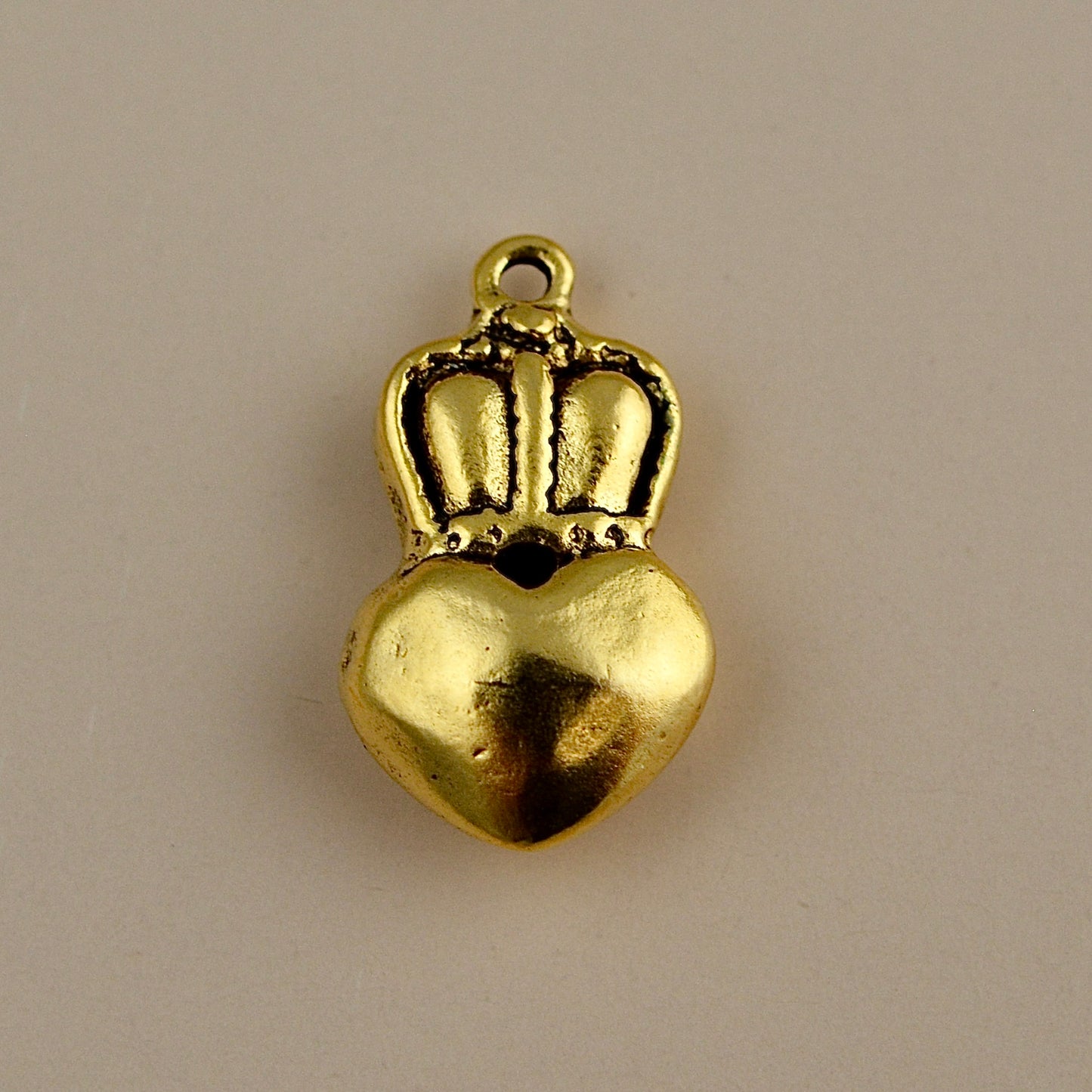 Add Crowned Heart Pendant, Antiqued Gold Charm, Artisan Jewelry Findings Components, GL-6345 to the cart