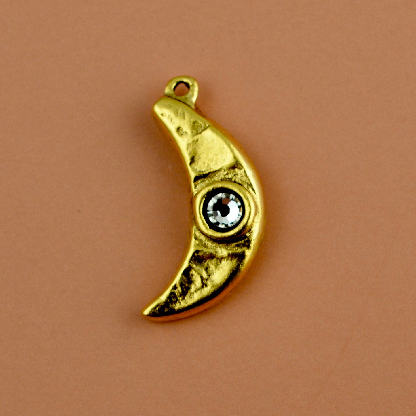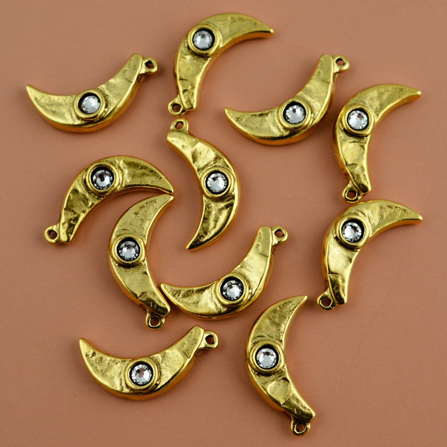 Add Small Textured Crescent Moon Crystal Pendant, Gold Celestial Charm, Artisan Jewelry Findings, GL-6347 to the cart