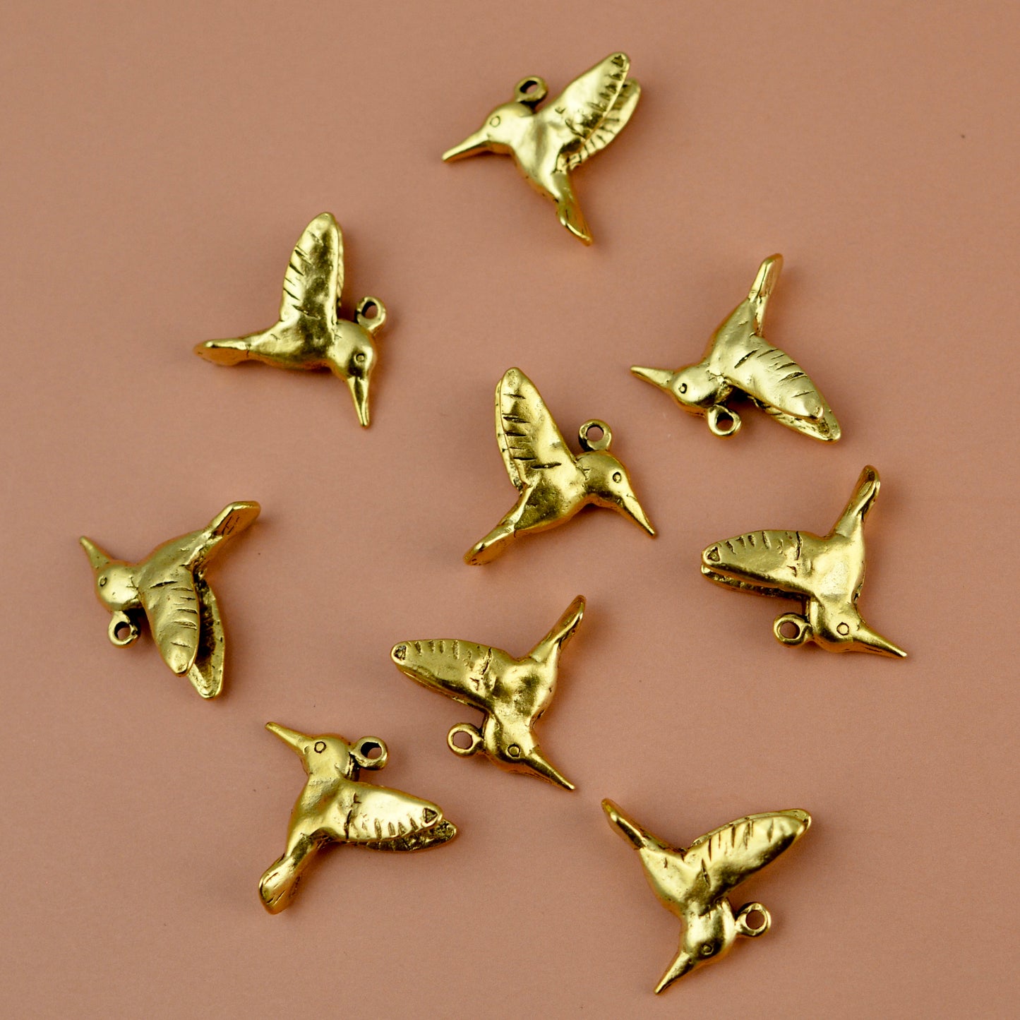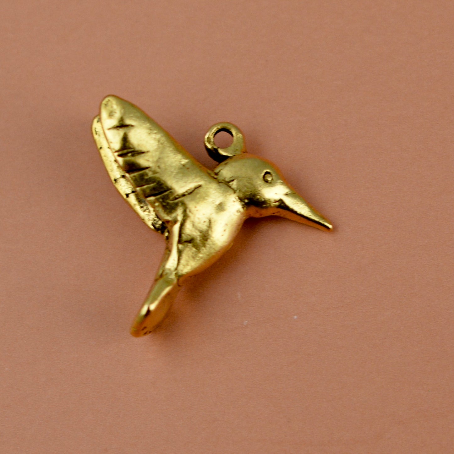 Small Hummingbird Charm, Gold Bird Pendant, Jewelry Making Supplies, GL-6360