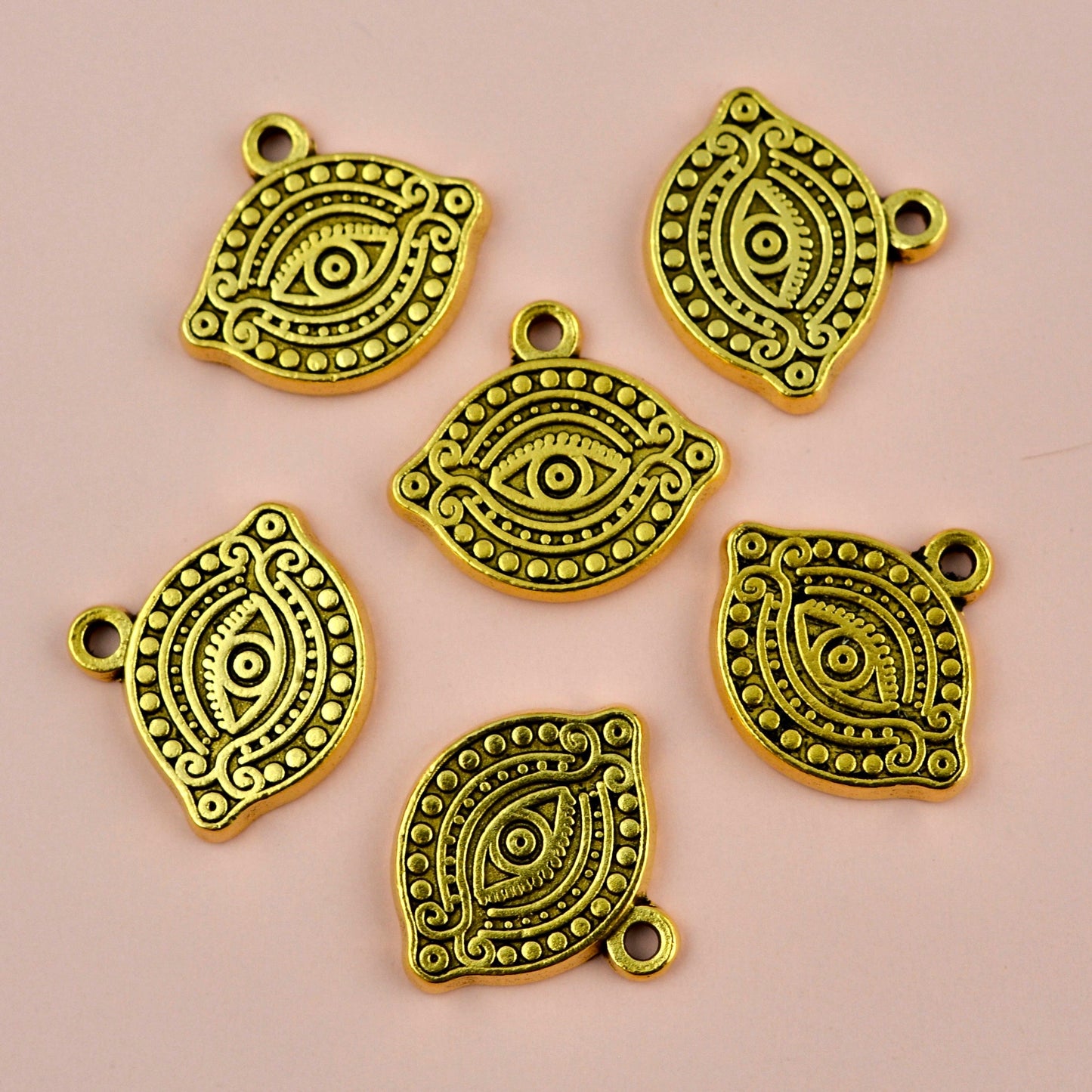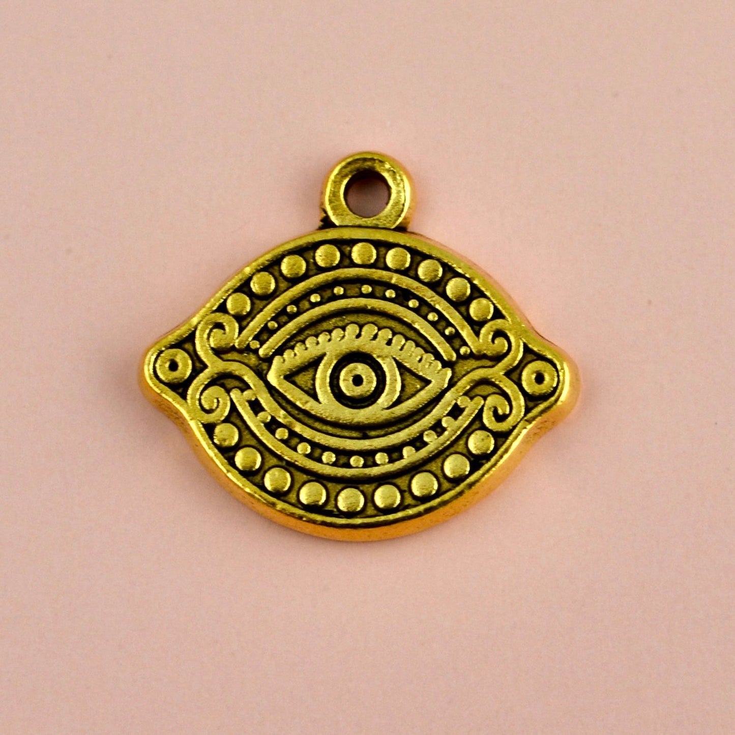 Evil Eye Charm, Antiqued Gold Protection Pendant, Jewelry Supplies, GL-6356