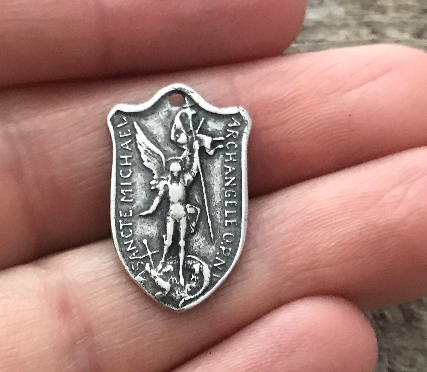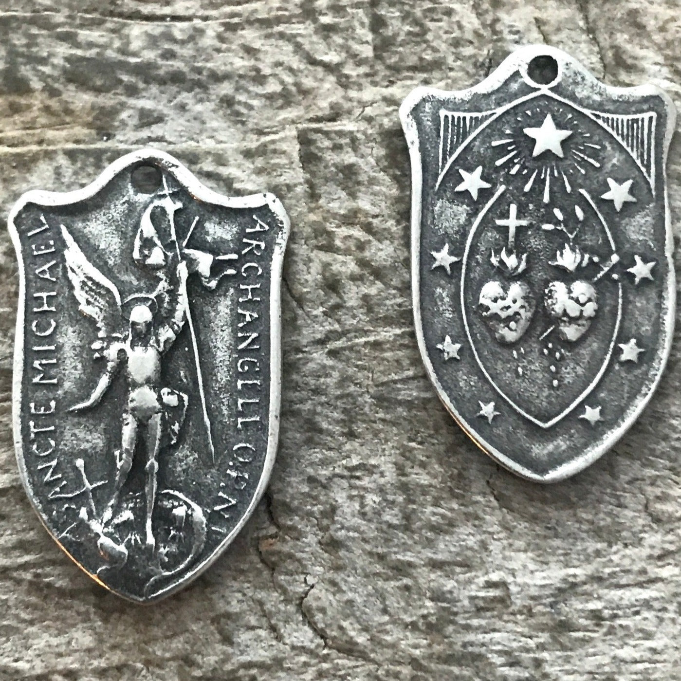 2 St. Michael Medal, Catholic Medal, Antiqued Silver Charm, Archangel Michael Shield, Religious Charm, Protect Us, Jewelry, PW-6186