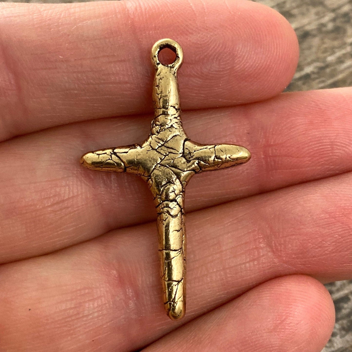 Skinny Crackled Stick Cross Pendant, Distressed Charm, Antiqued Gold Cross for Jewelry Making Supplies, GL-6083
