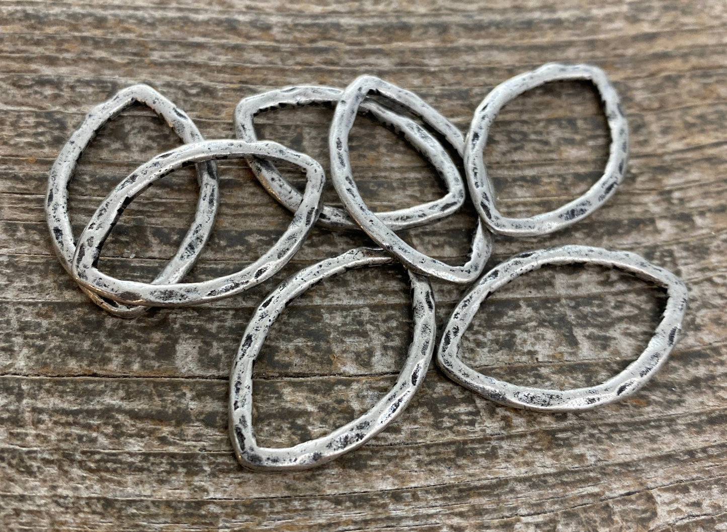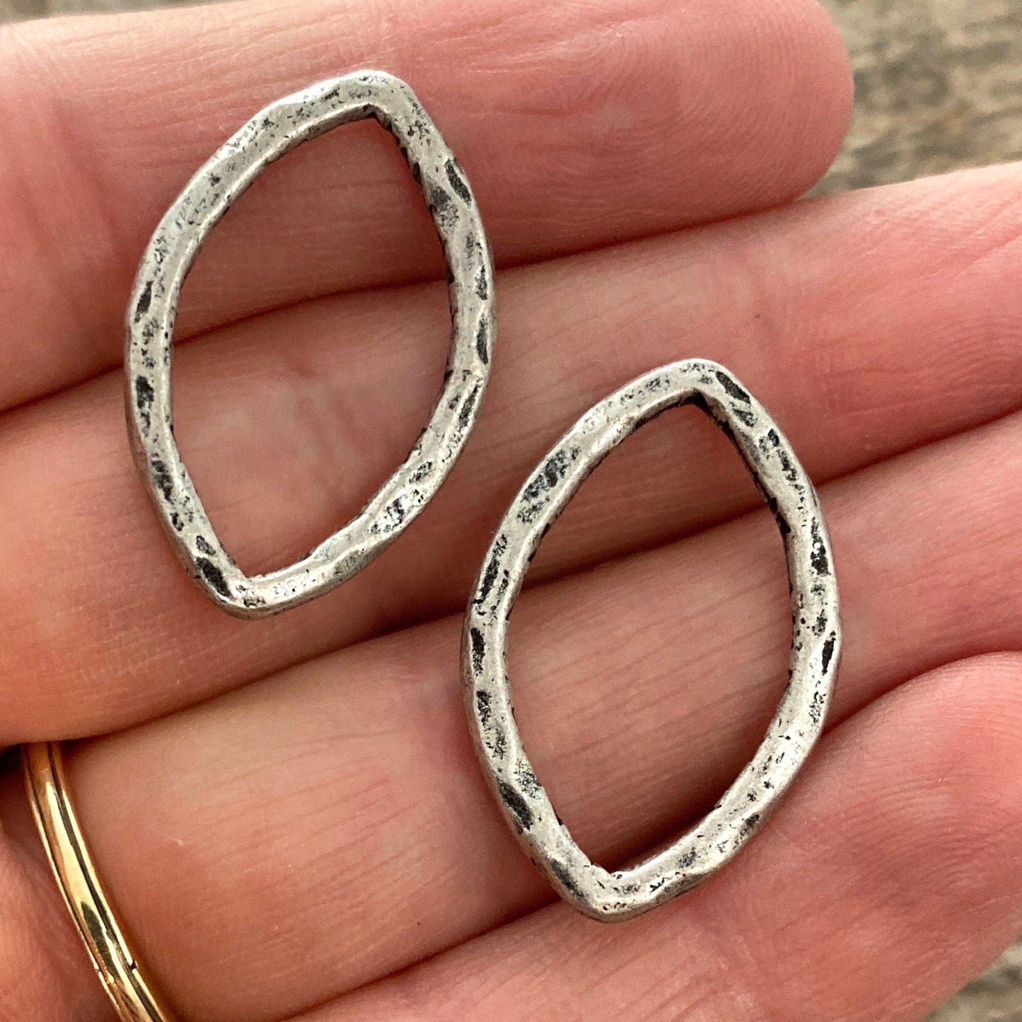 2 Hammered Link, Navette Marquise Connector, Leather Ring Hoop, Antiqued Silver Jewelry Supply, Carsons Cove, PW-6087