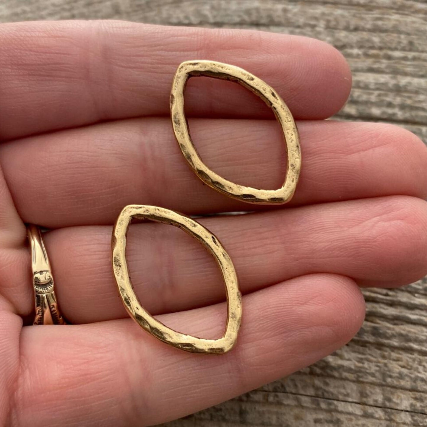 Add 2 Hammered Link, Navette Marquise Connector, Leather Ring Hoop, Antiqued Gold Jewelry Supply, GL-6087 to the cart