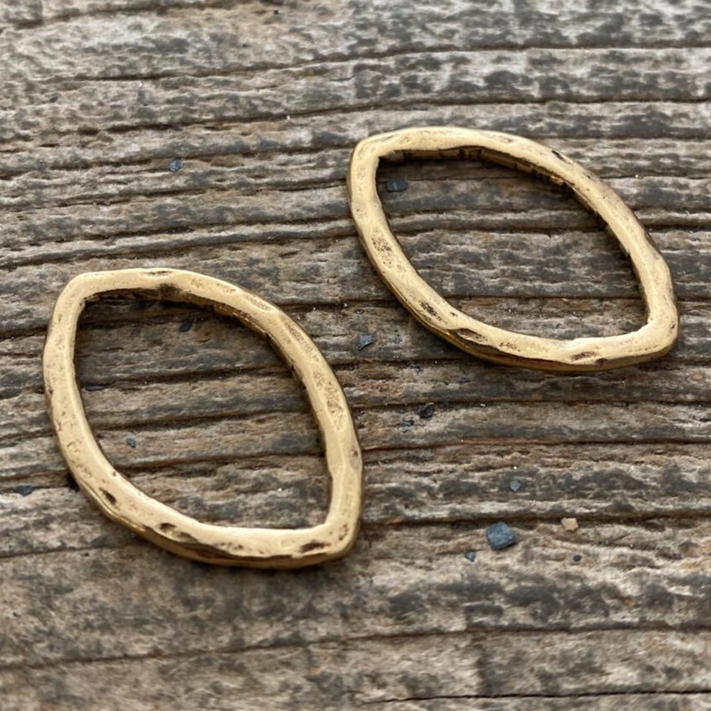 2 Hammered Link, Navette Marquise Connector, Leather Ring Hoop, Antiqued Gold Jewelry Supply, GL-6087