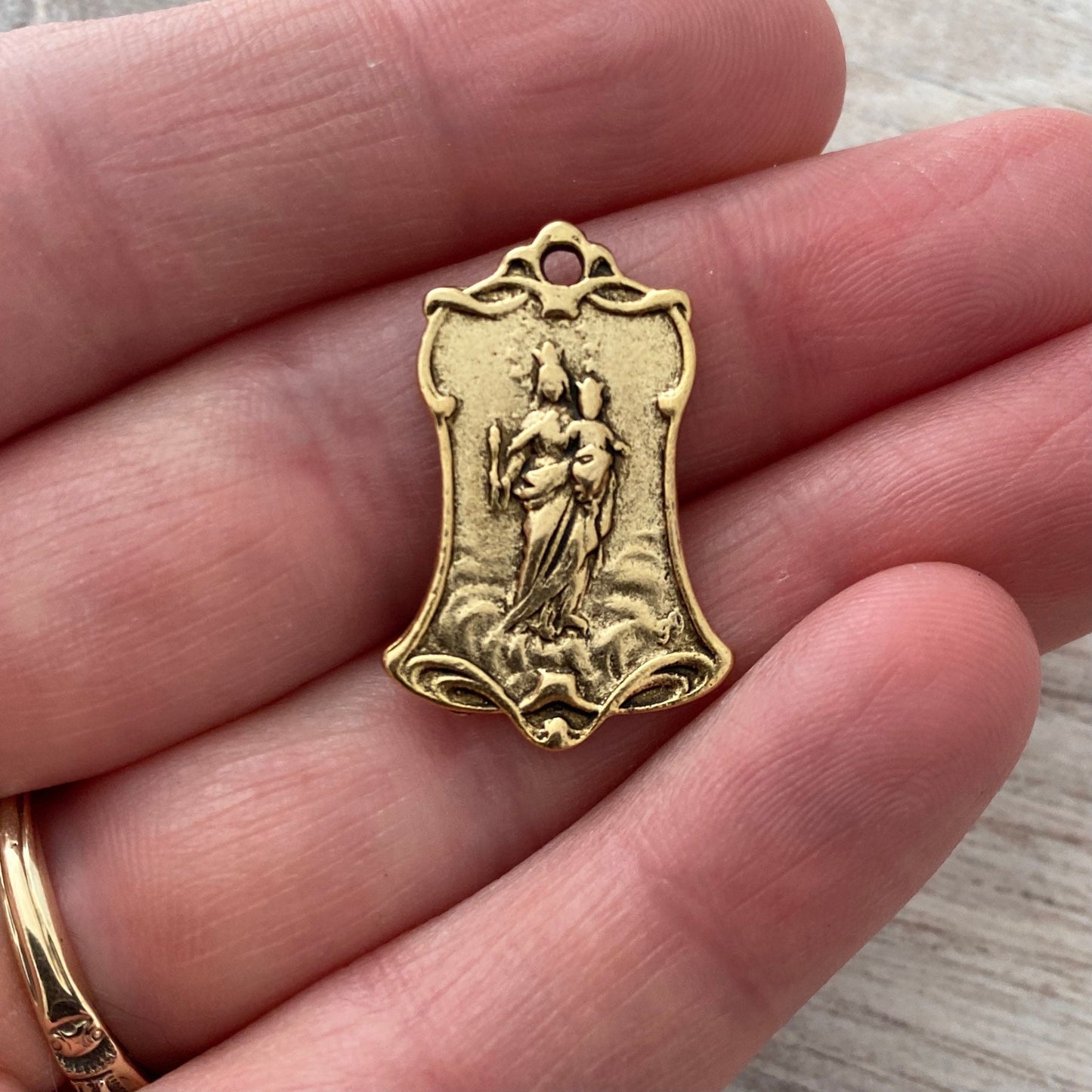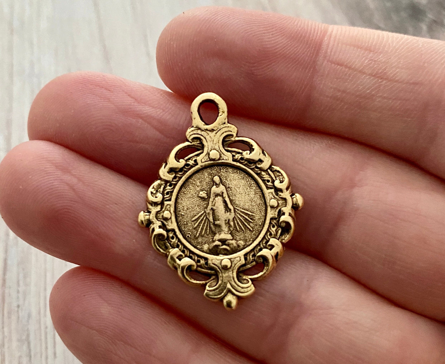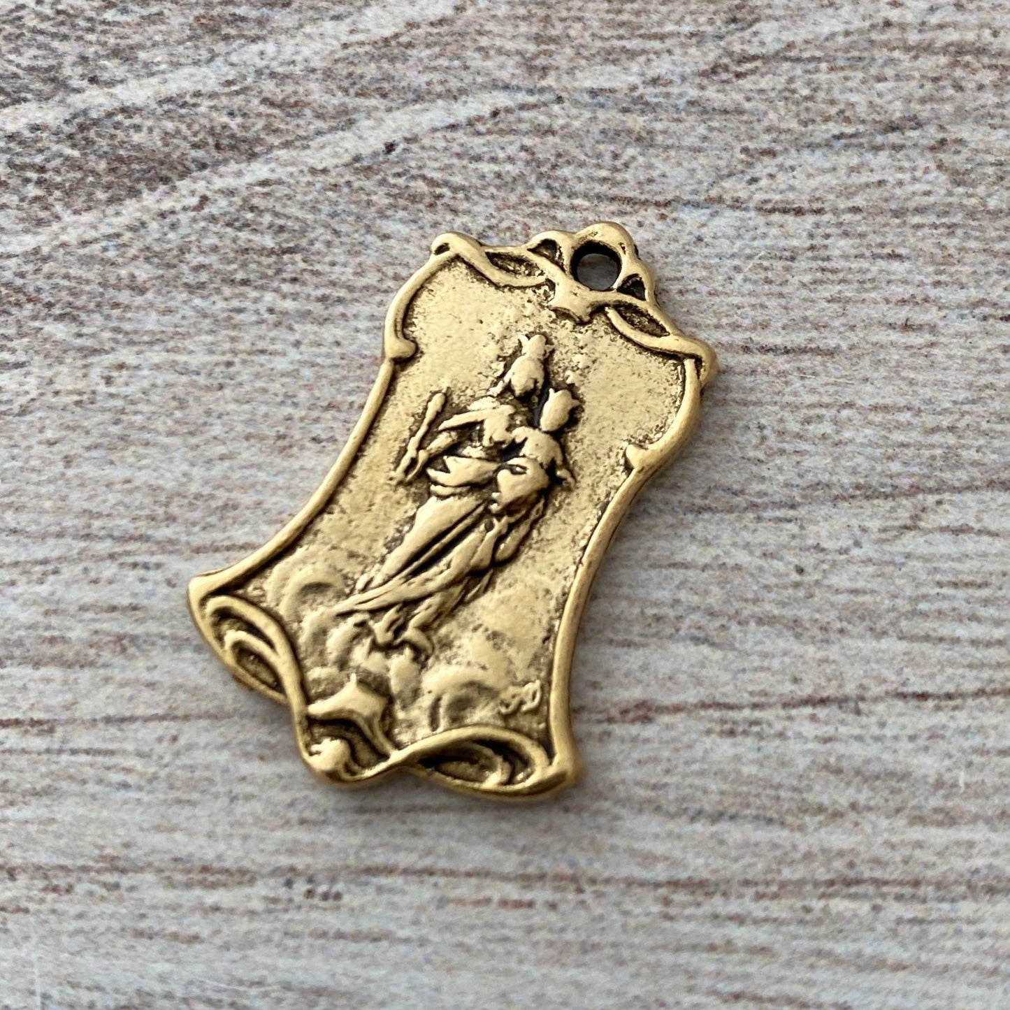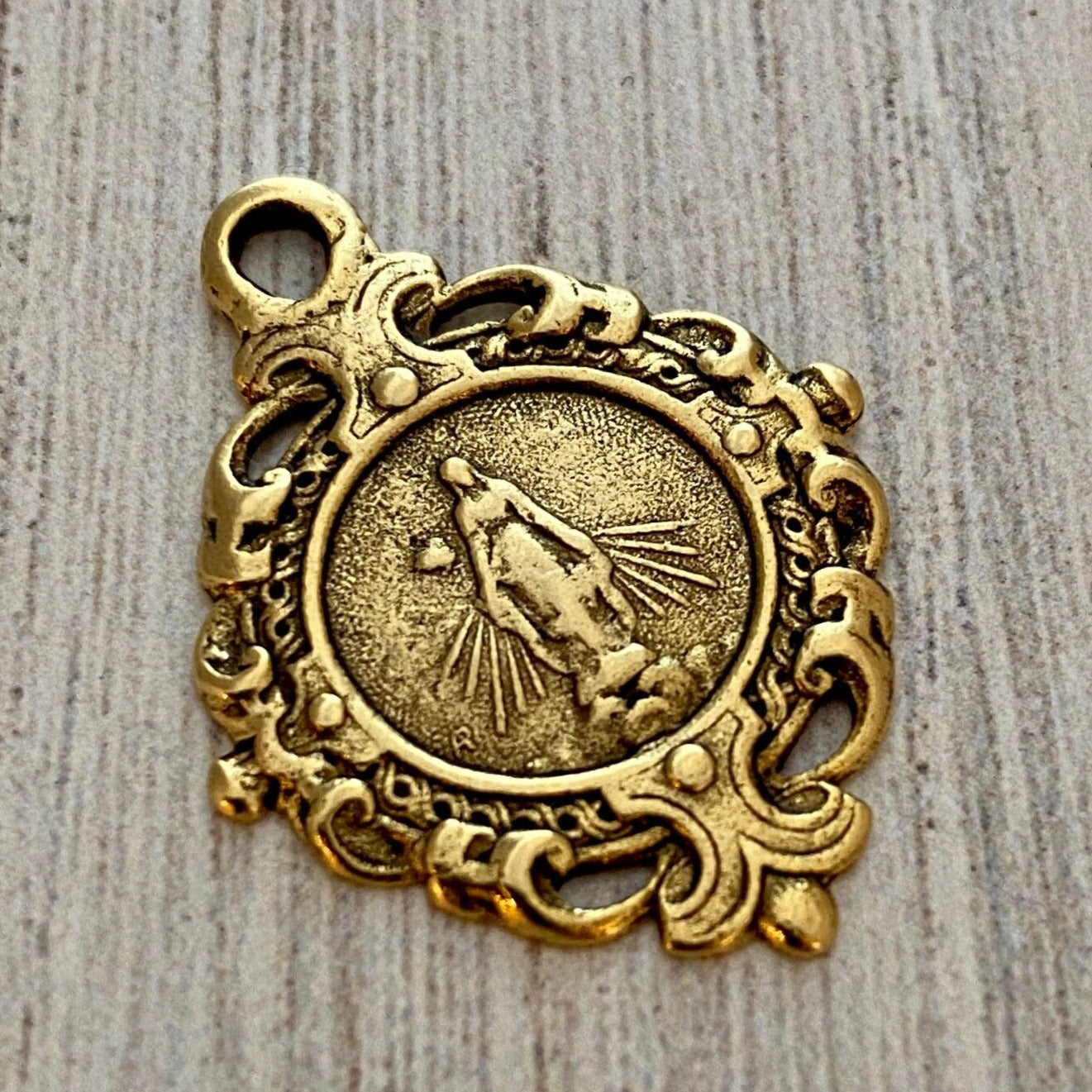 Mary Medal, Art Nouveau Medal, Antiqued Gold Religious Jewelry Making Charm Pendant, Catholic Jewelry, GL-6115