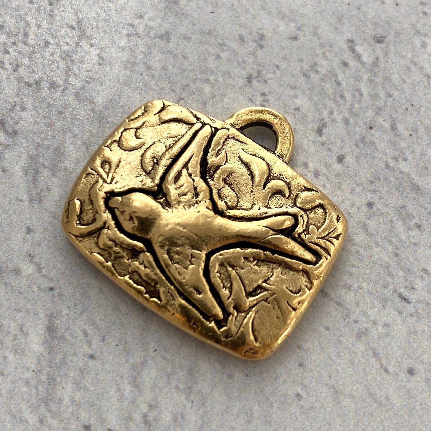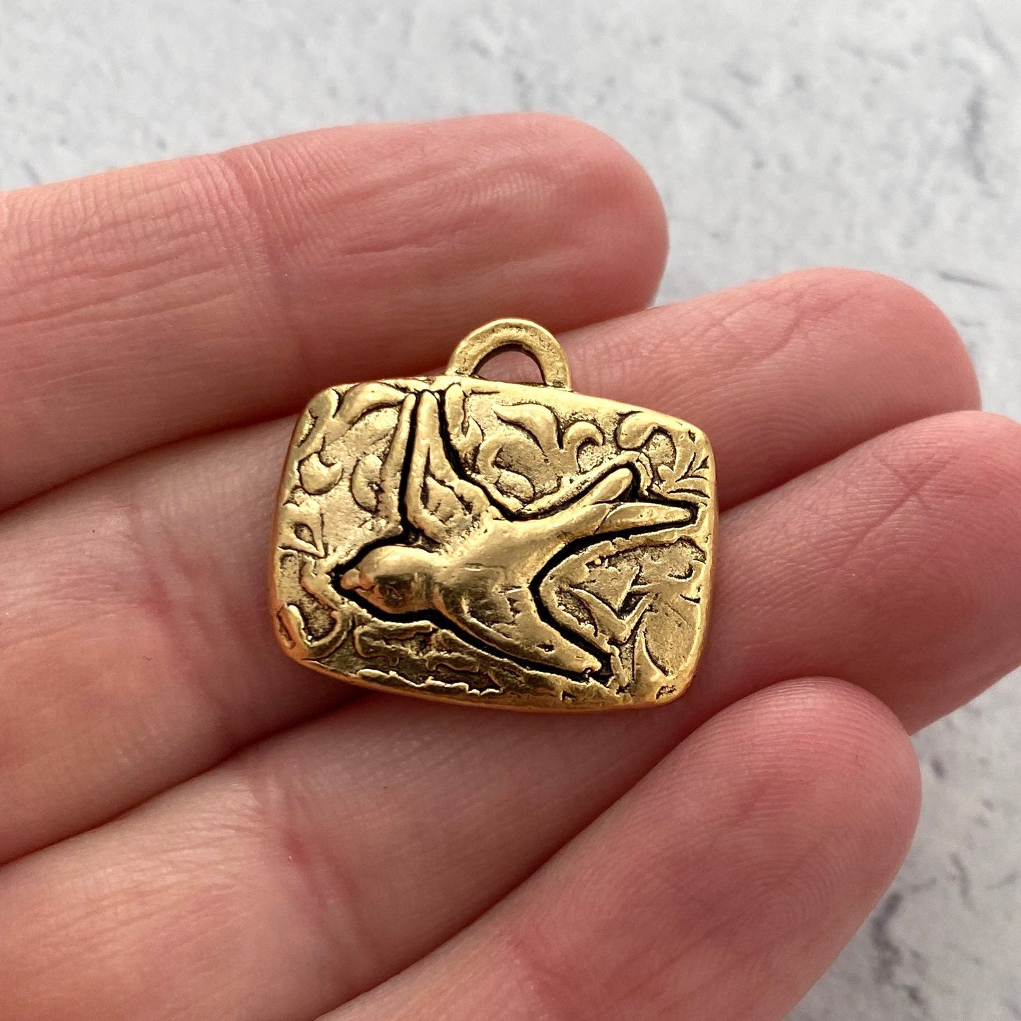 Bird Pendant, Antiqued Gold Rectangle Nature Charm for Jewelry Making, GL-6117
