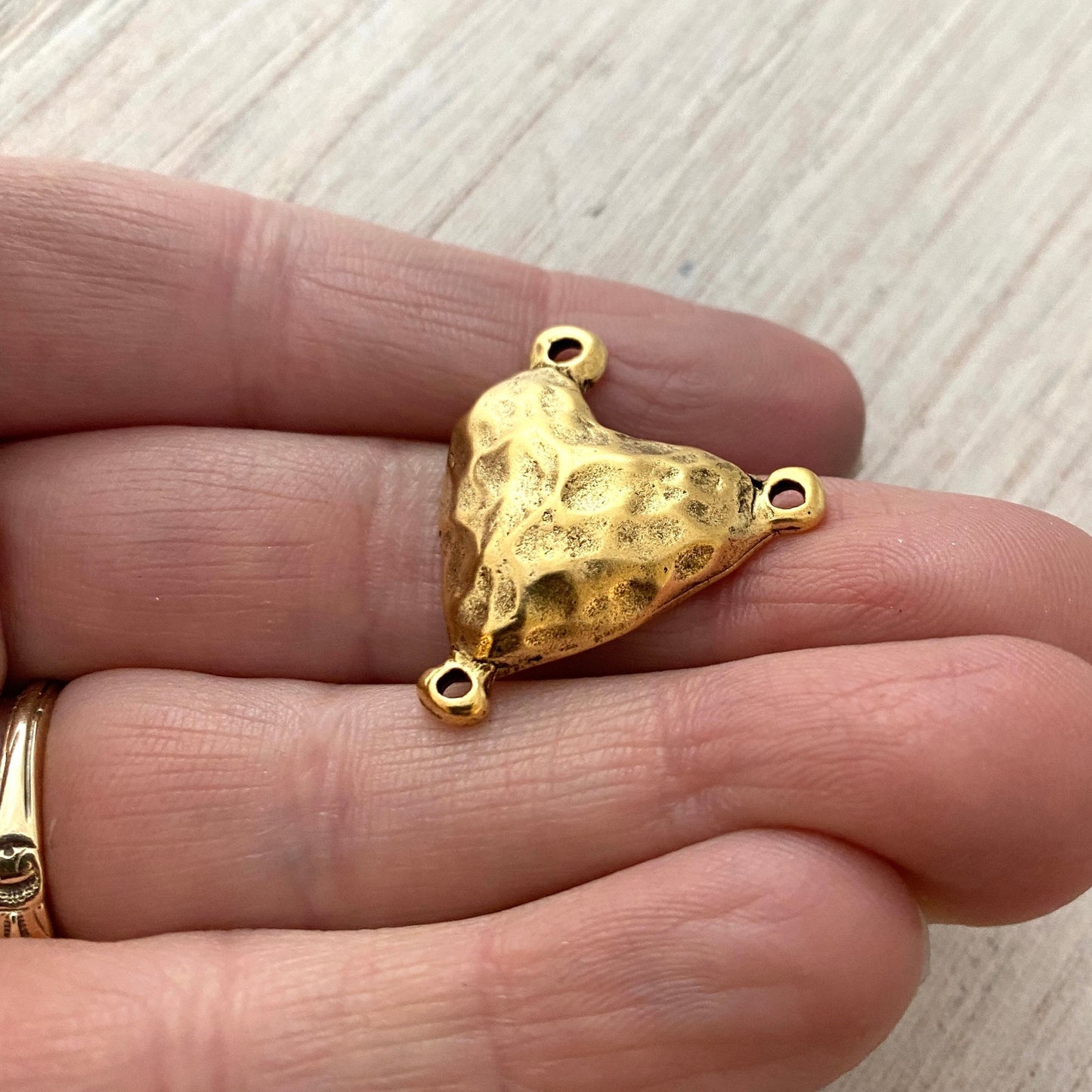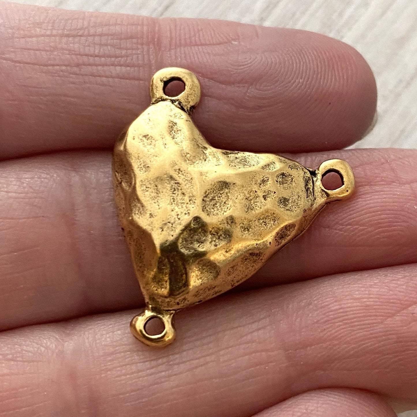 Gold Puffy Hammered Heart Connector, Rosary Centerpiece, Heart Pendant, 3 Way Connector, GL-6147