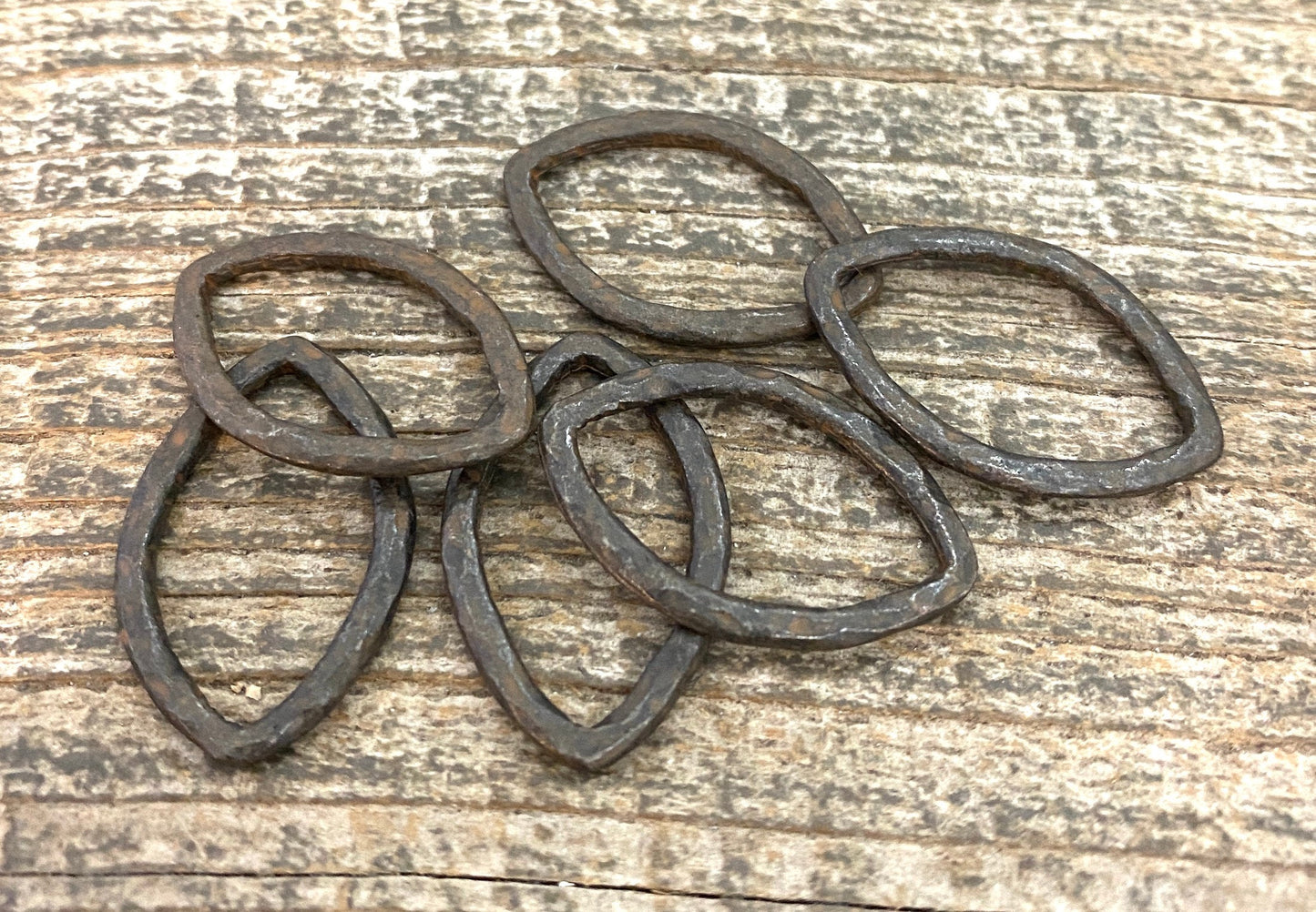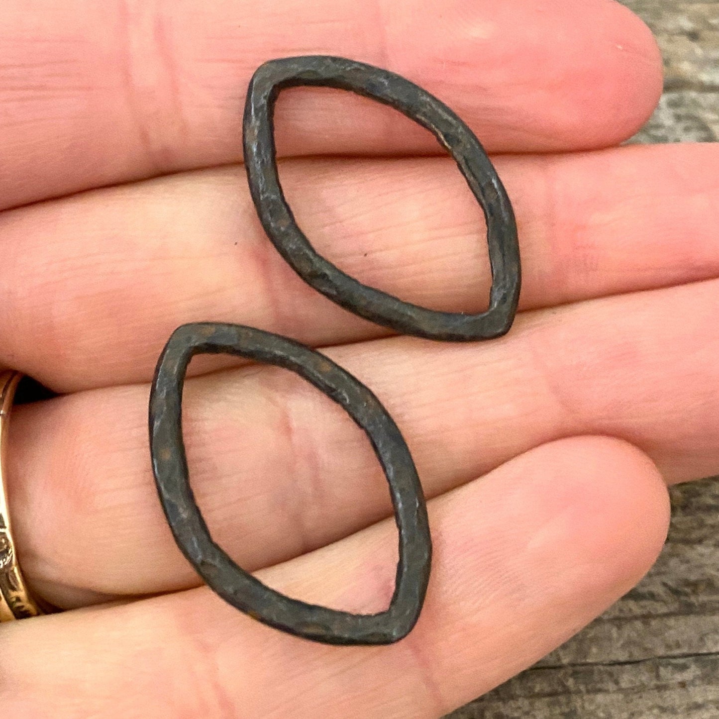 2 Hammered Link, Navette Marquise Connector, Leather Ring Hoop, Antiqued Rustic Brown Jewelry Supply, BR-6087