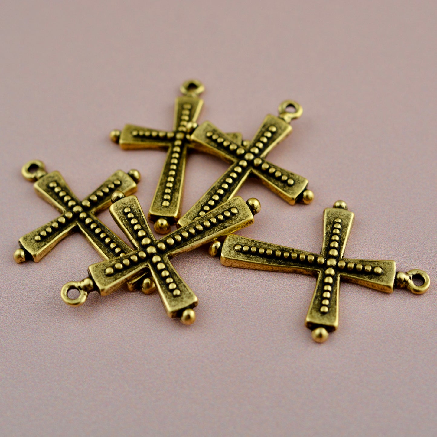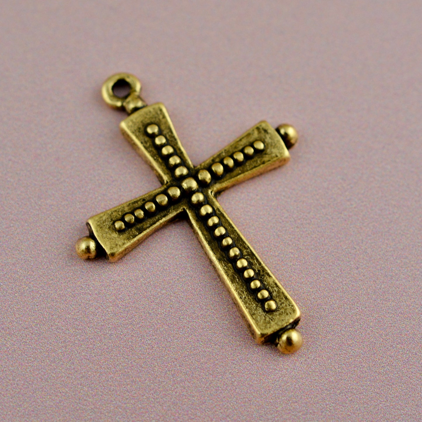 Dotted Vintage Cross, Antiqued Gold, Religious Pendant, Artisan Charm, Jewelry Making, GL-6332