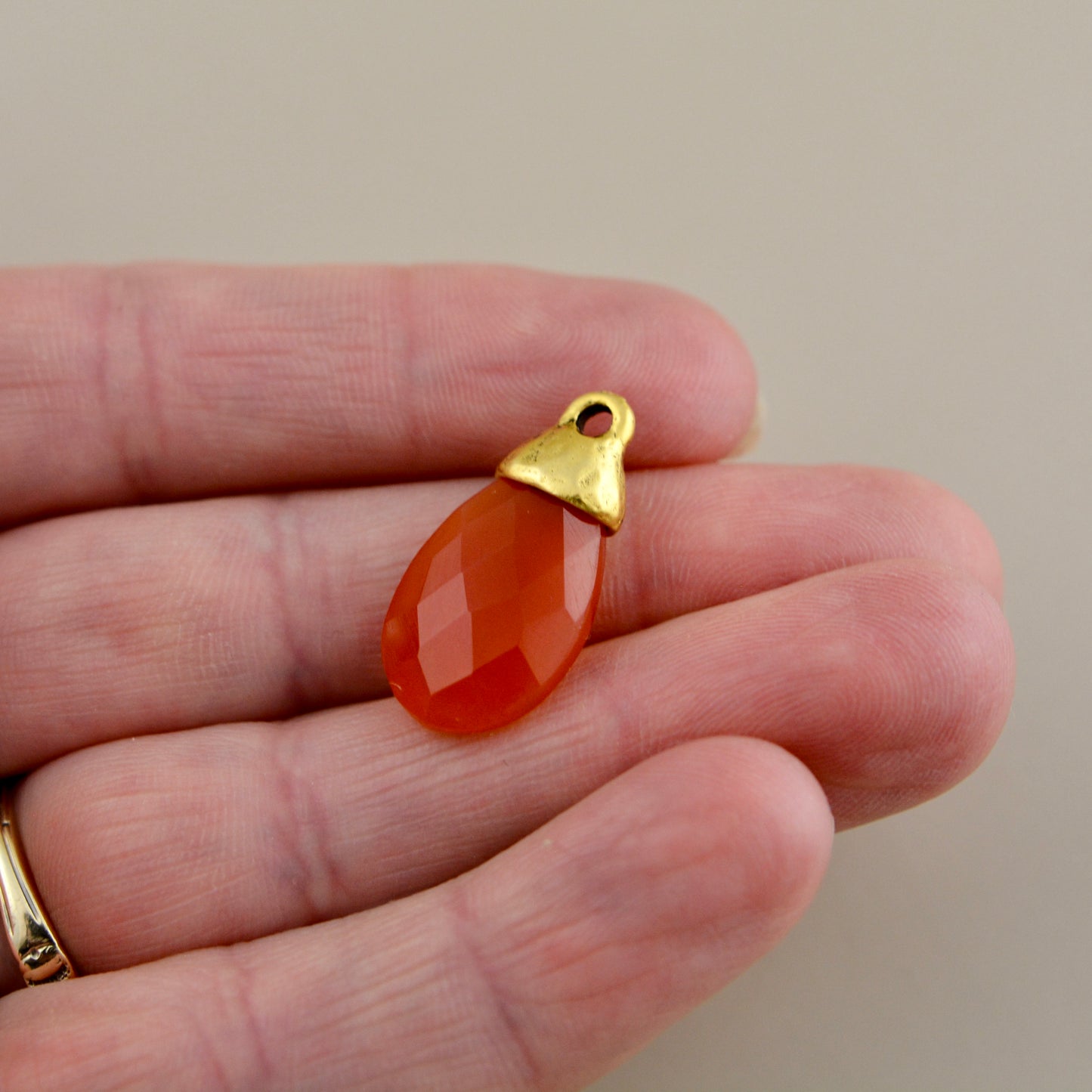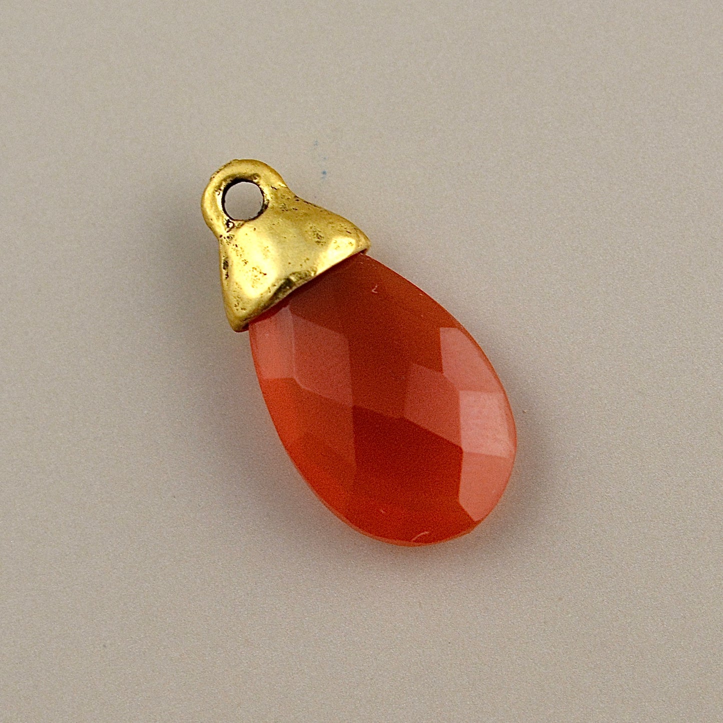 Carnelian Pear Faceted Briolette Drop Pendant with Antique Gold Bead Cap, Gemstone, Jewelry Making Artisan Findings, GL-S047