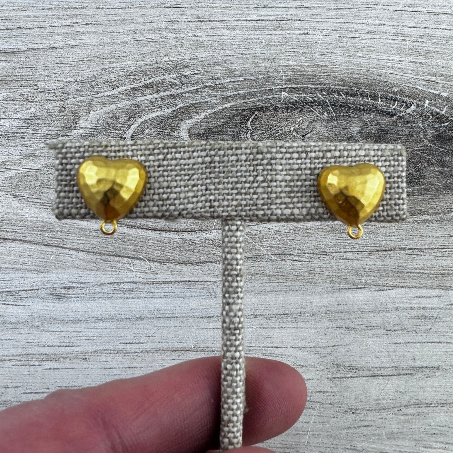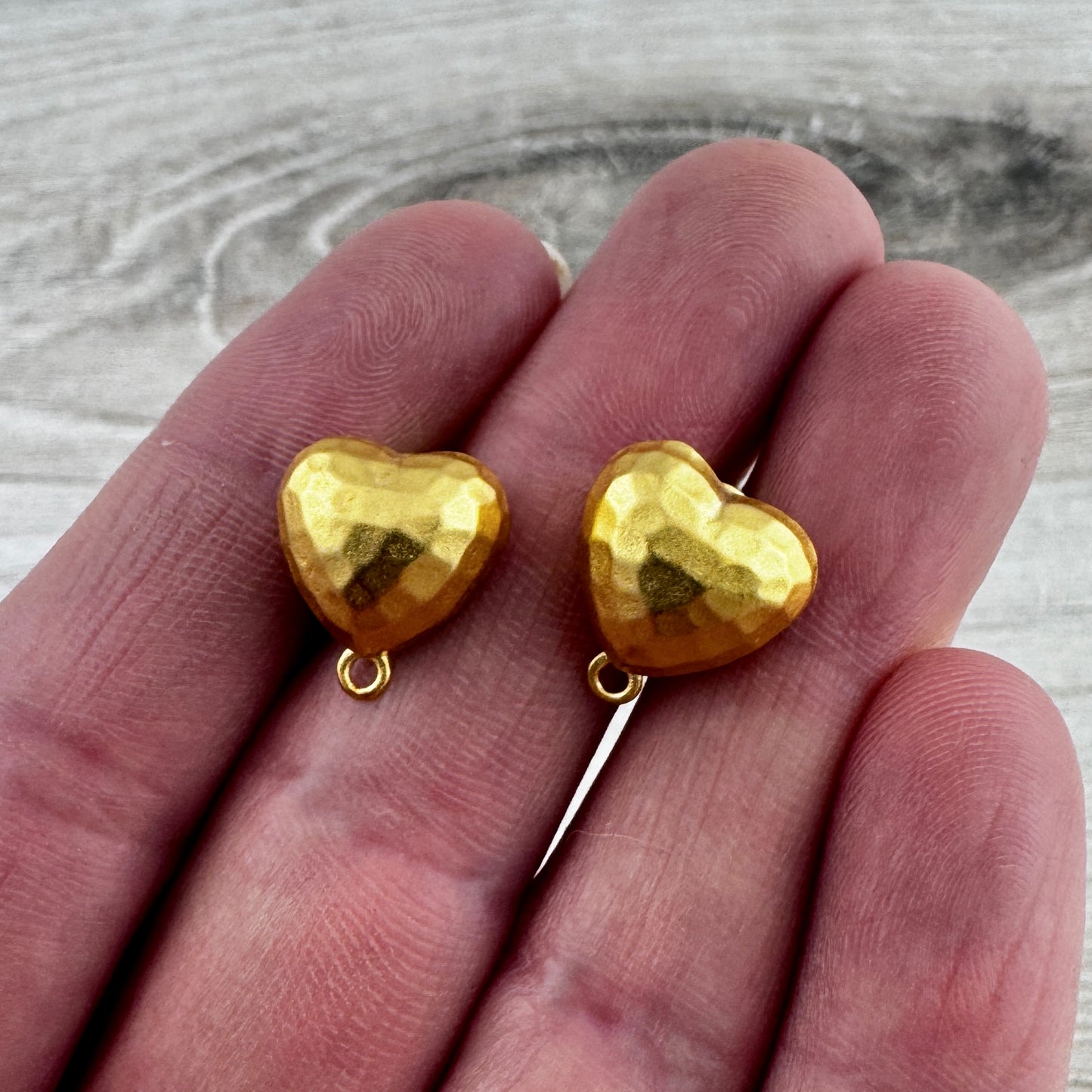 Add Pair of Puffy Heart Studs, Geometric Hammered Gold Earring Post, Jewelry Making Artisan Findings, GL-6331 to the cart
