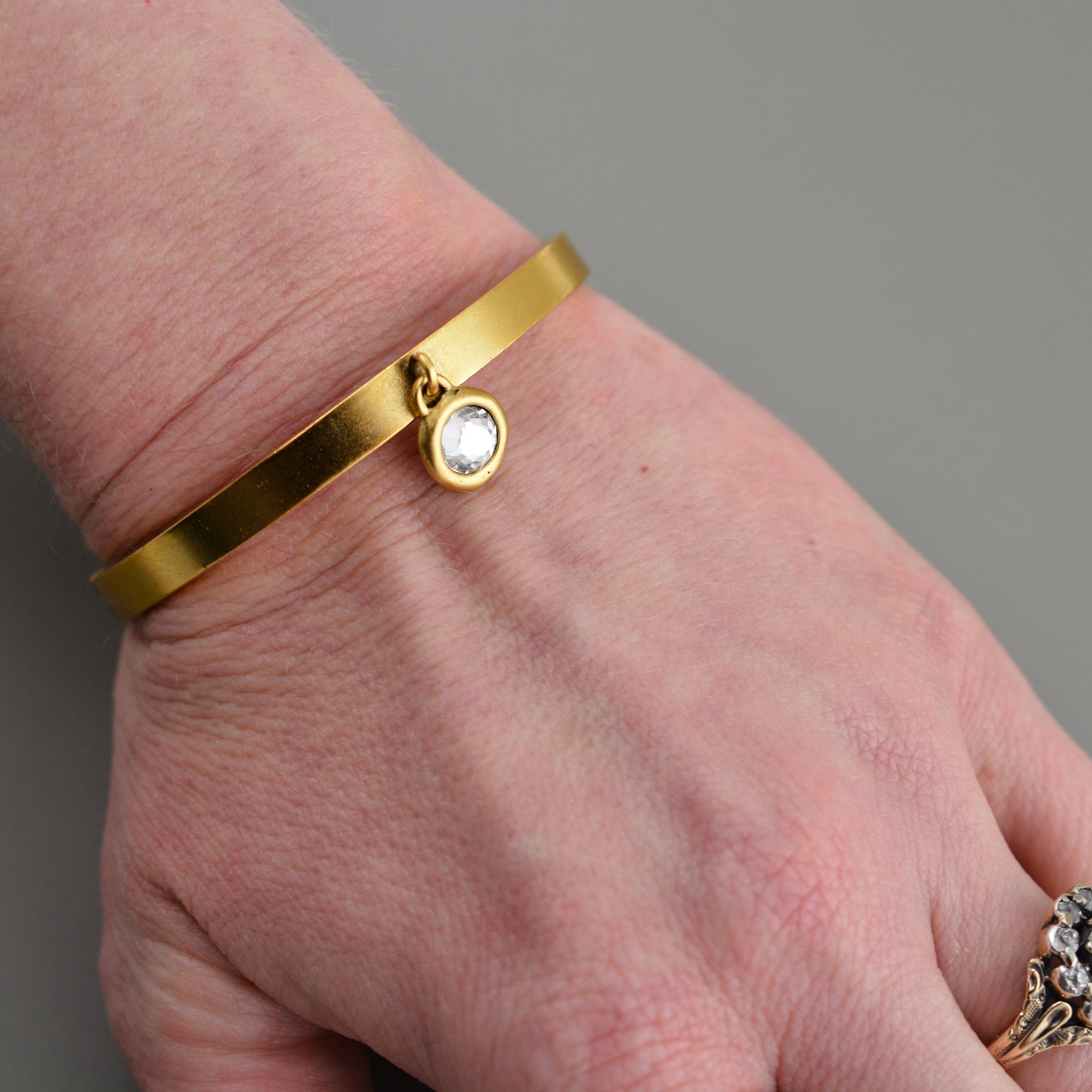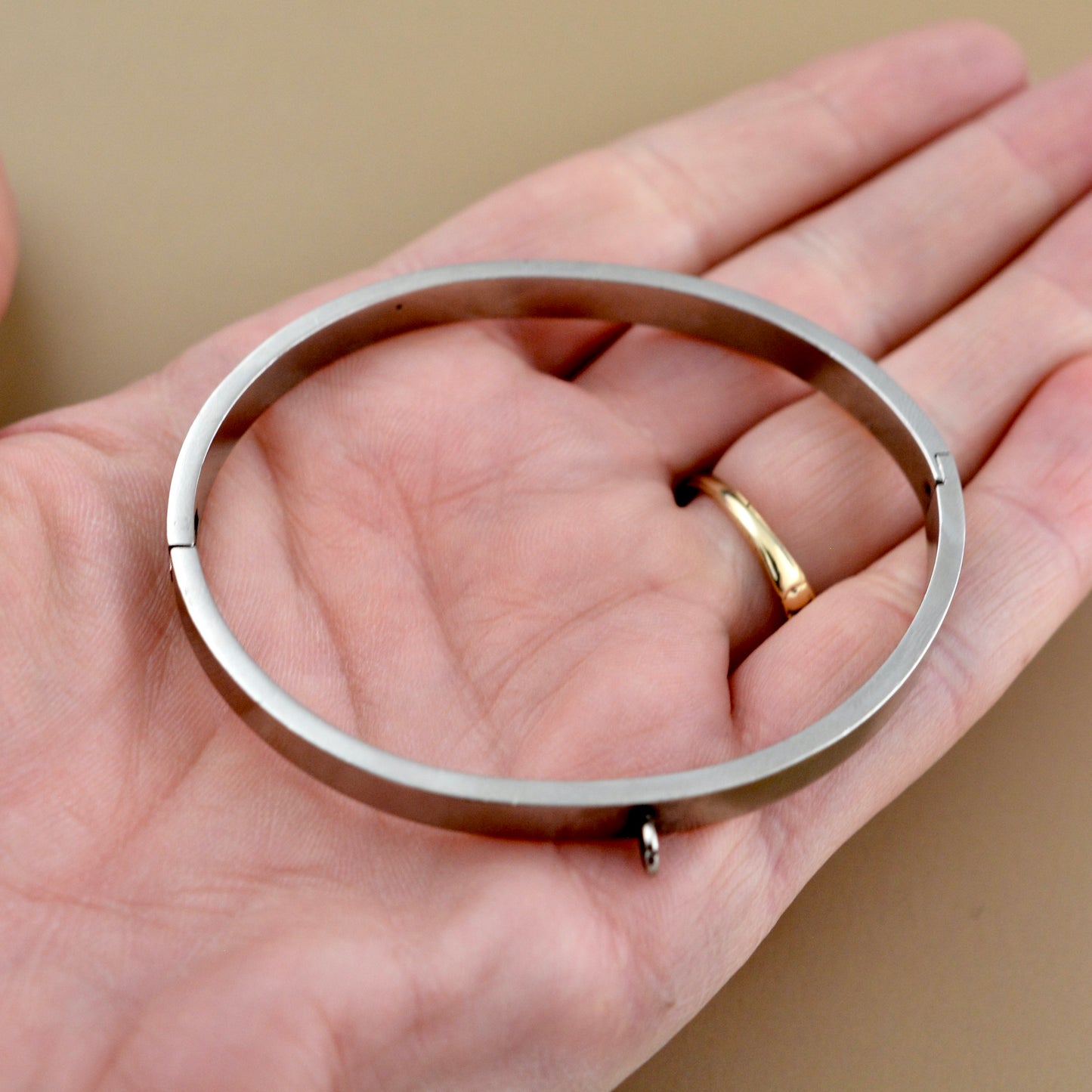 Add Gold Hinged Bangle Bracelet, Flat Smooth with Charm Attachment, Jewelry Making Supplies, GL-6348 to the cart