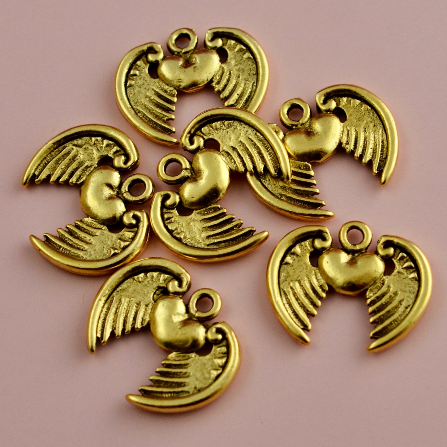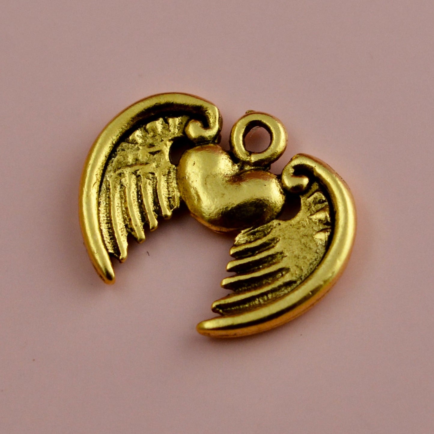 Add Winged Flying Heart Pendant, Antiqued Gold Charm, Artisan Jewelry Findings Components, GL-6343 to the cart