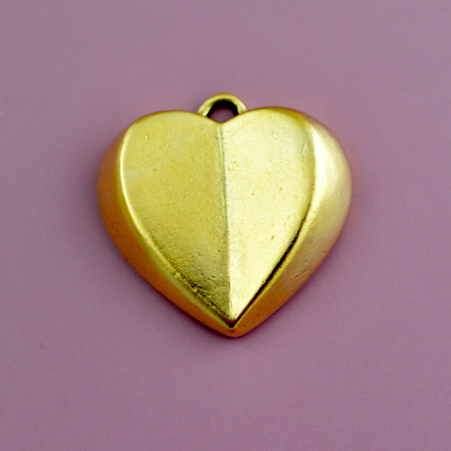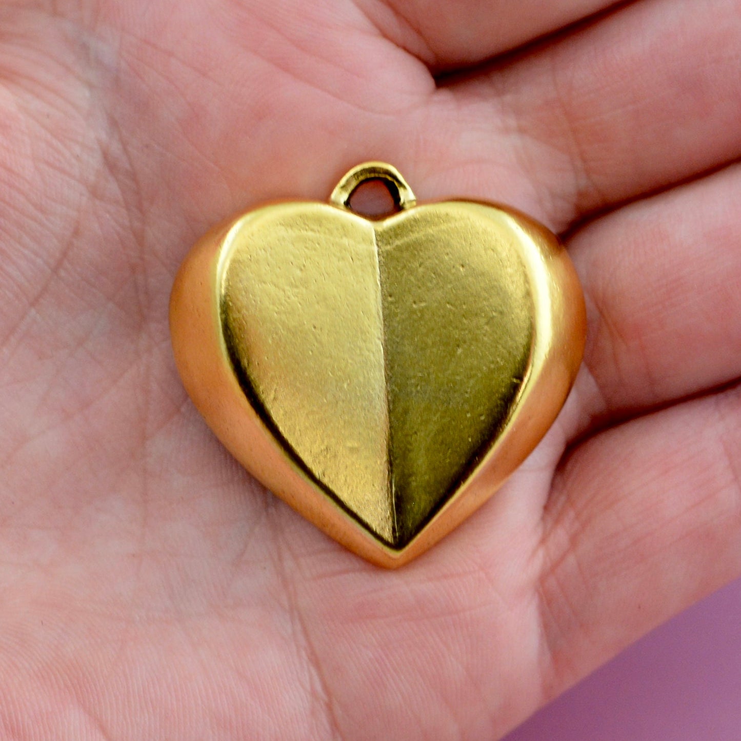 Gold Medium Geometric Heart Pendant, Vintage Smooth Heart Charm, Jewelry Making, GL-6346