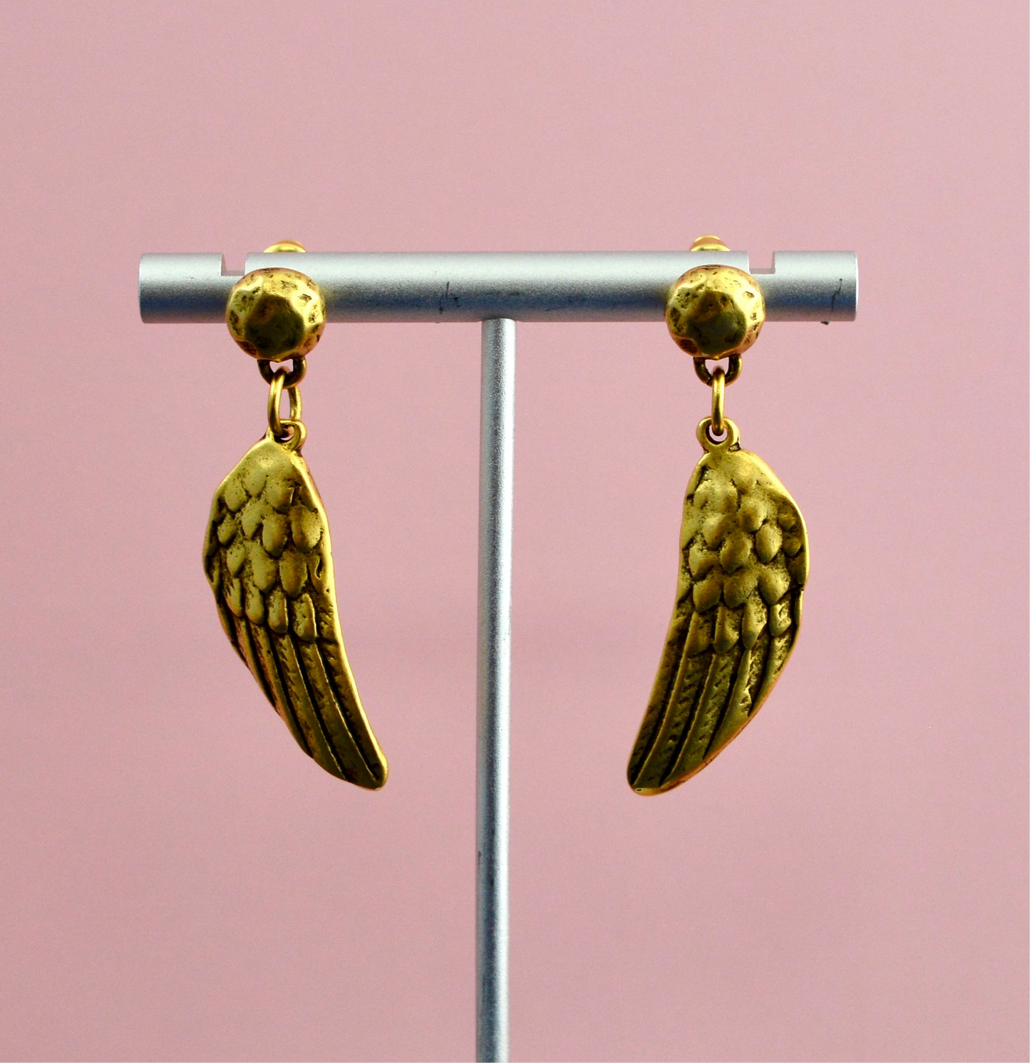 Add Pair of Small Hammered Puffy Circle Studs, Antiqued Gold Earring Post, Jewelry Making Artisan Findings, GL-6333 to the cart