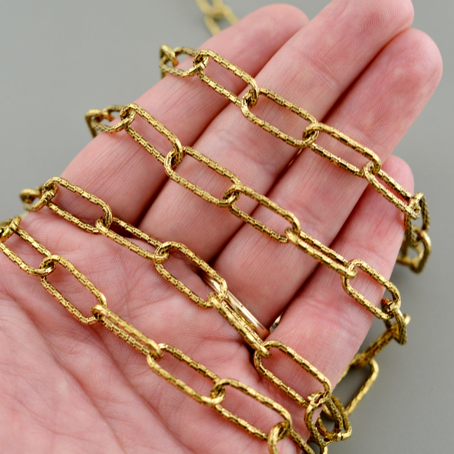 Add Textured Large Gold Paperclip Chain by the Foot, Hammered Rectangle Chain, Jewelry Supplies, GL-2075 to the cart