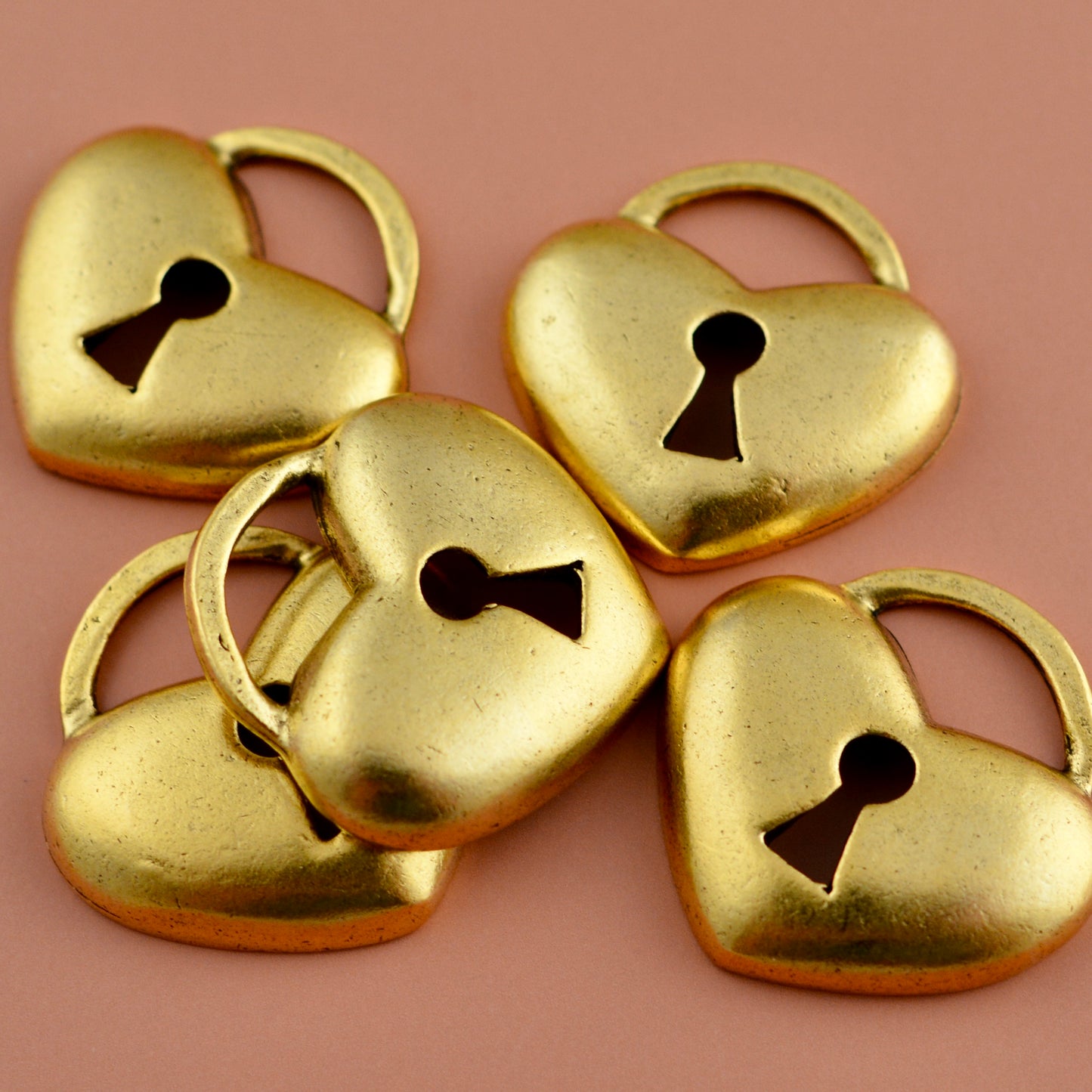Wide Heart Lock Pendant, Gold Charm, Jewelry Making Supplies, Carson's Cove, GL-6330