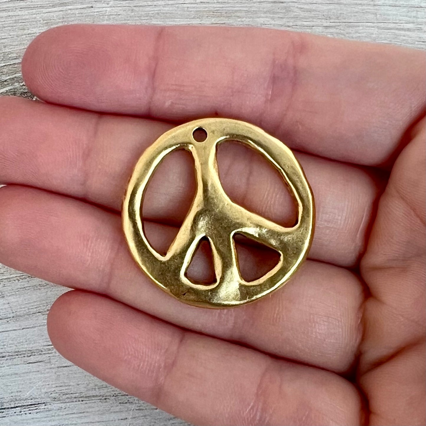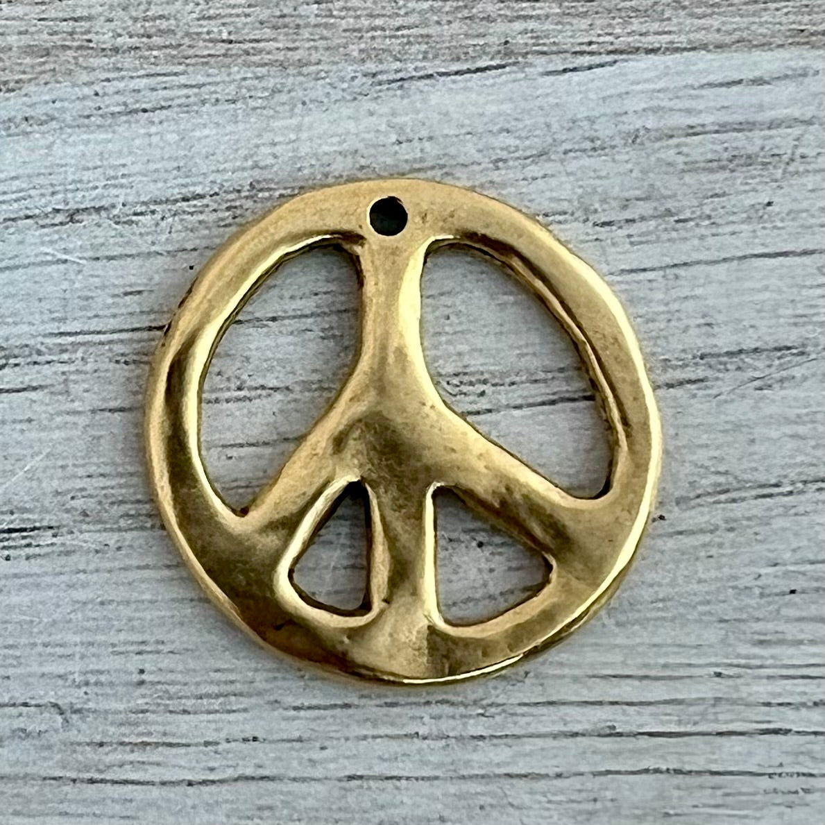 Peace Sign Pendant, Smooth Gold Symbol Charm, Artisan Jewelry Findings, GL-6305