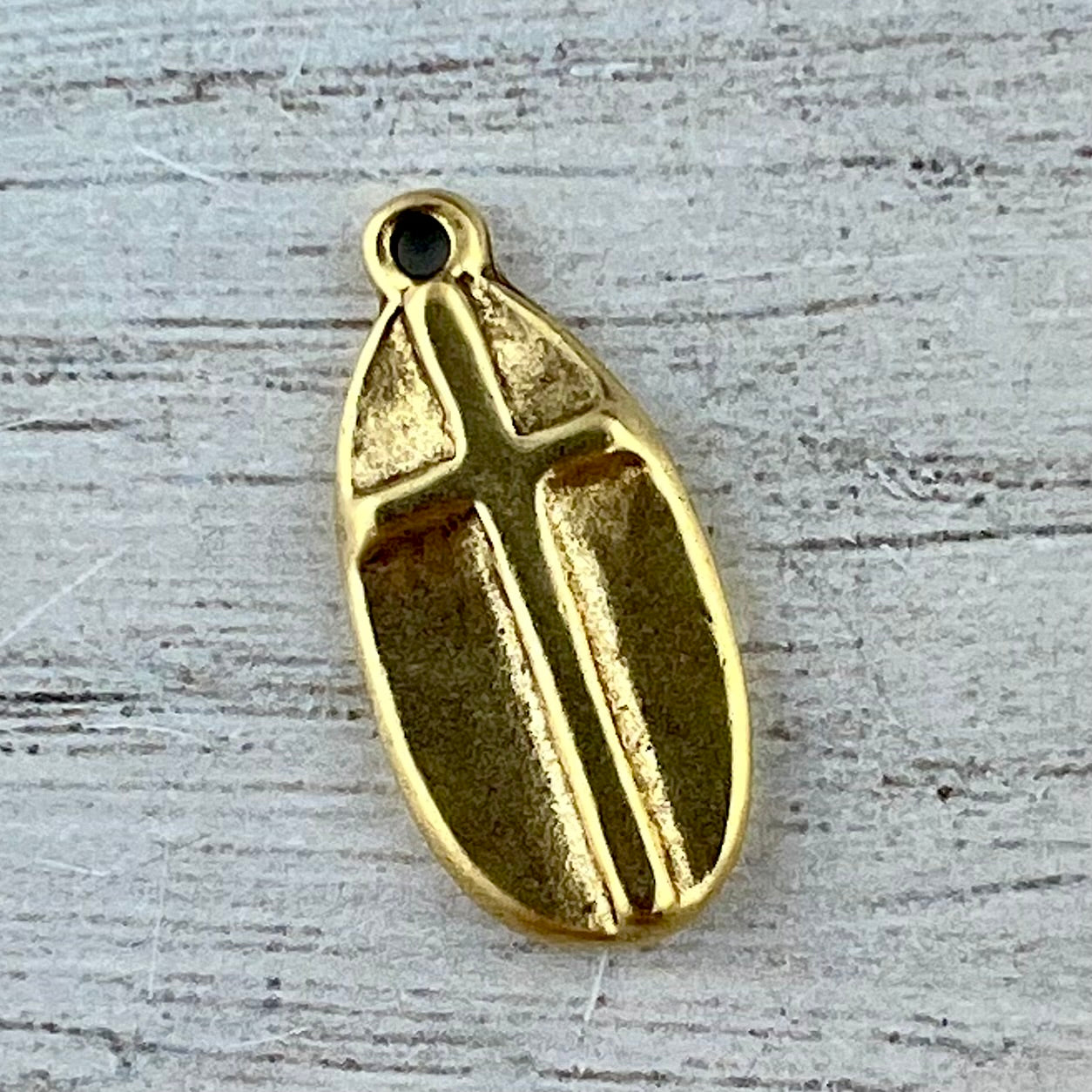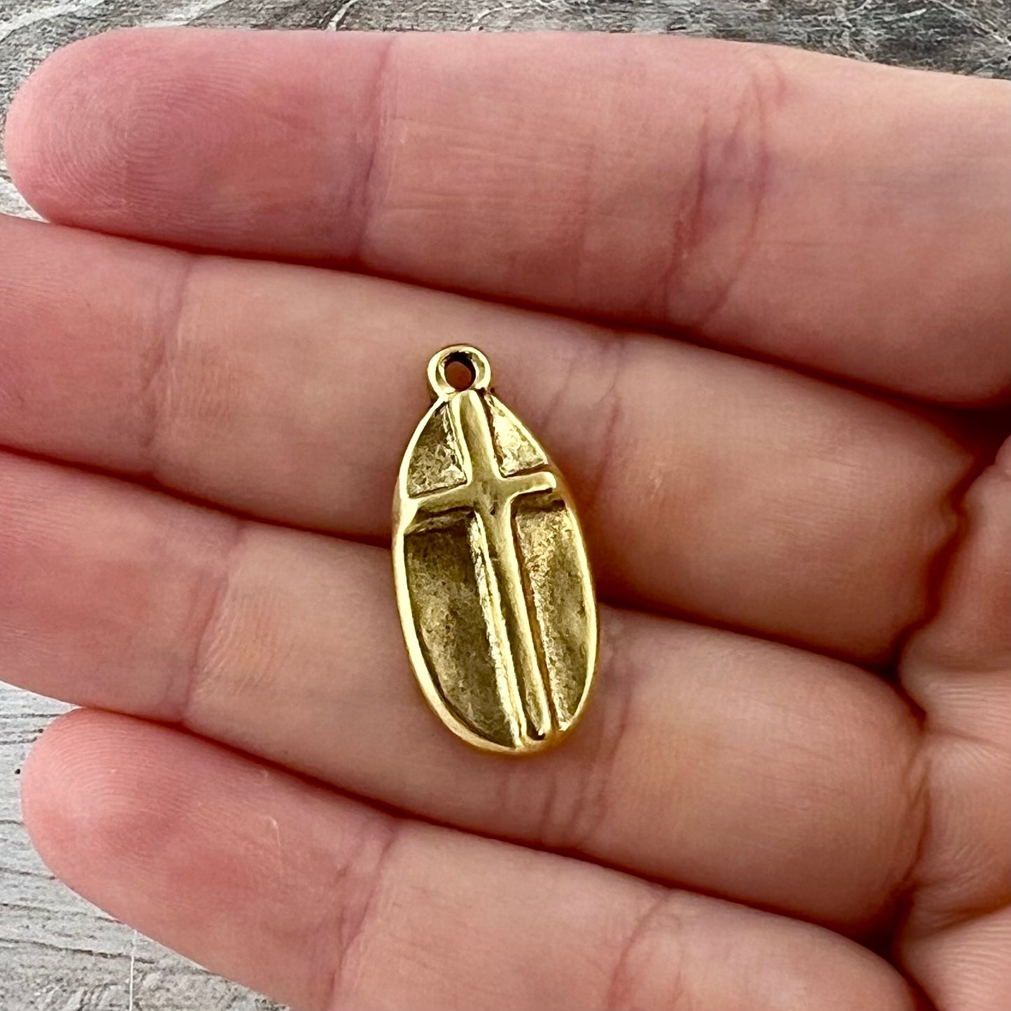 Oval Cross Charm, Gold Pendant, Artisan Jewelry Findings, GL-6309