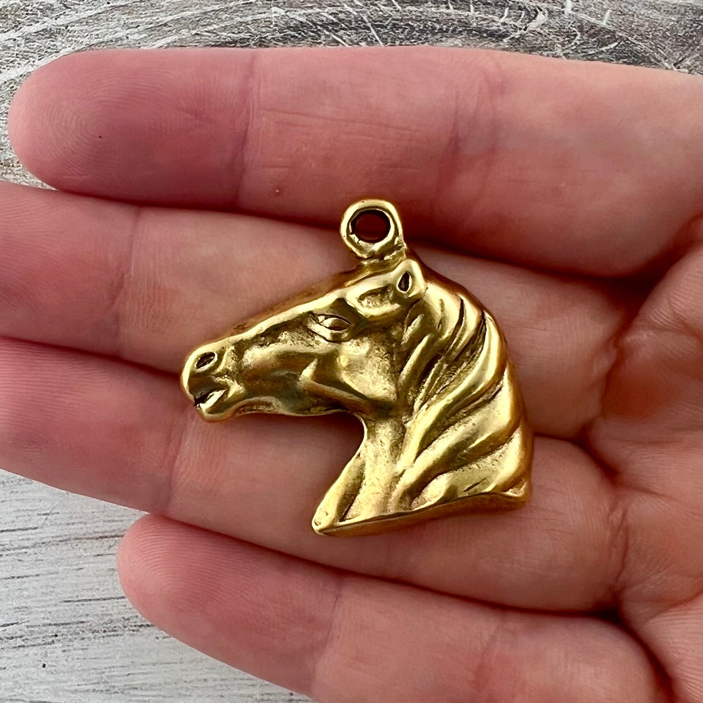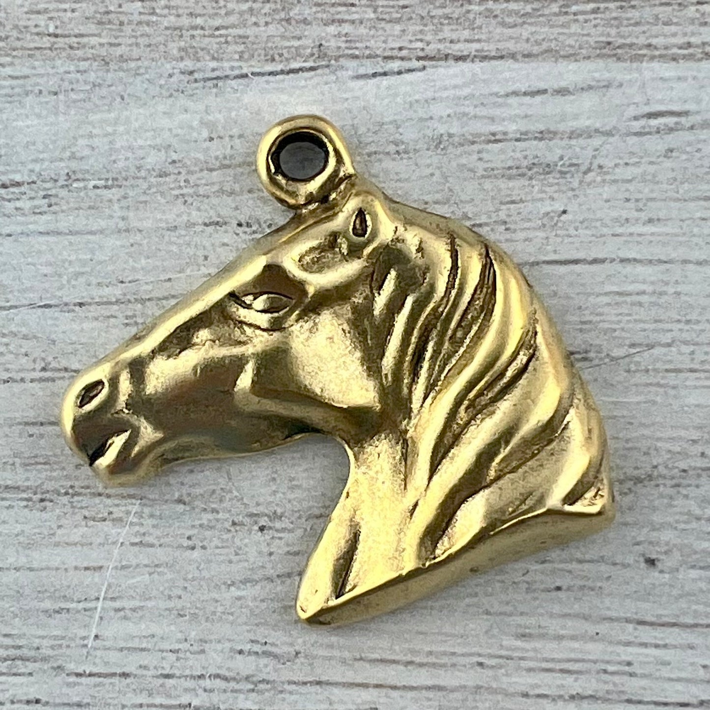 Horse Charm Pendant, Antiqued Gold Equestrian, Carson's Cove Artisan Jewelry Supplies, GL-6304