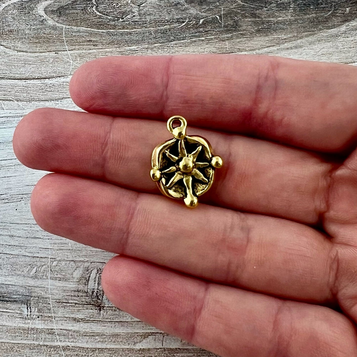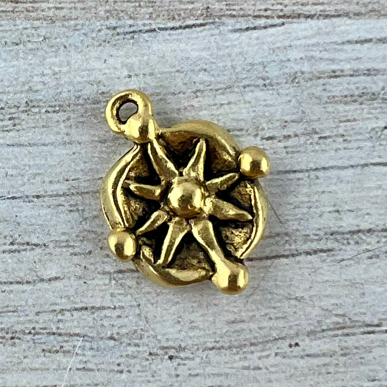 Dotted Compass Charm, Antiqued Gold Star, Jewelry Findings, GL-6298