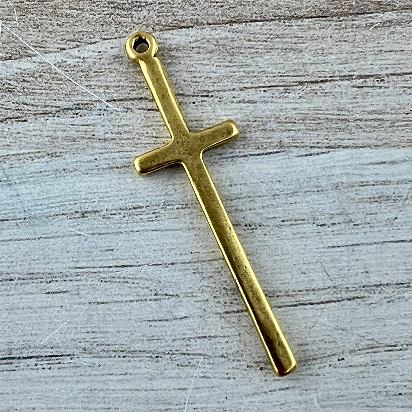 Cross Pendant, Gold Skinny Stick Cross, Modern Thin Artisan Charm, Carson's Cove, GL-6302