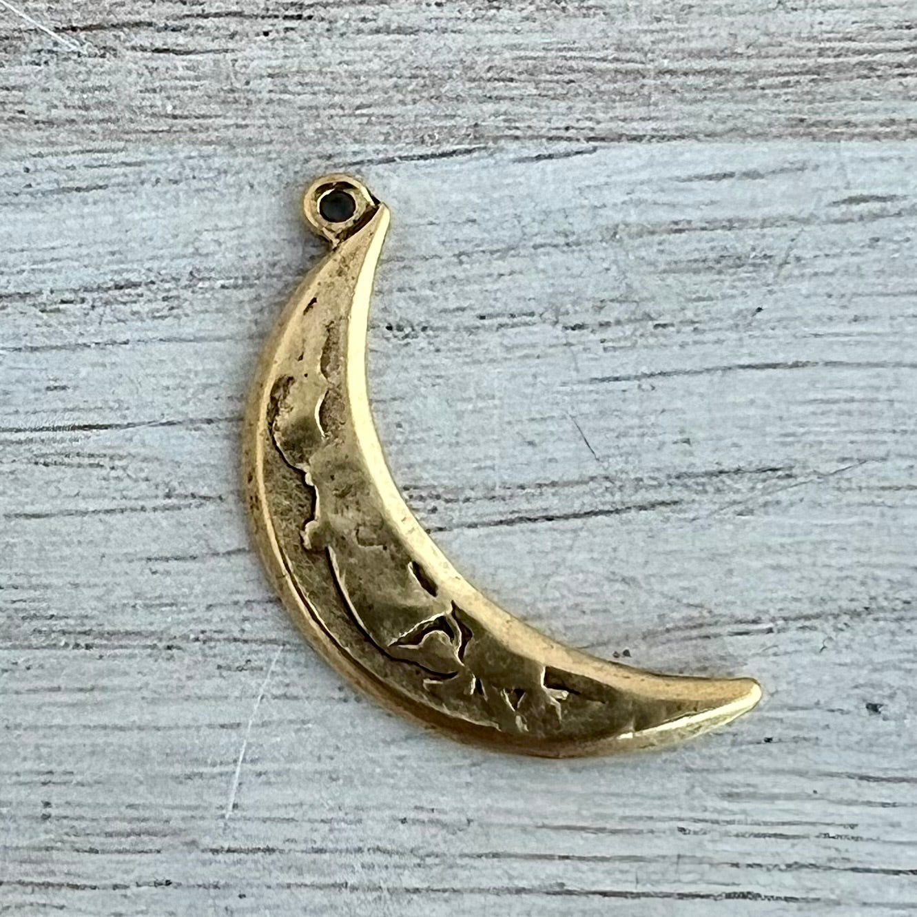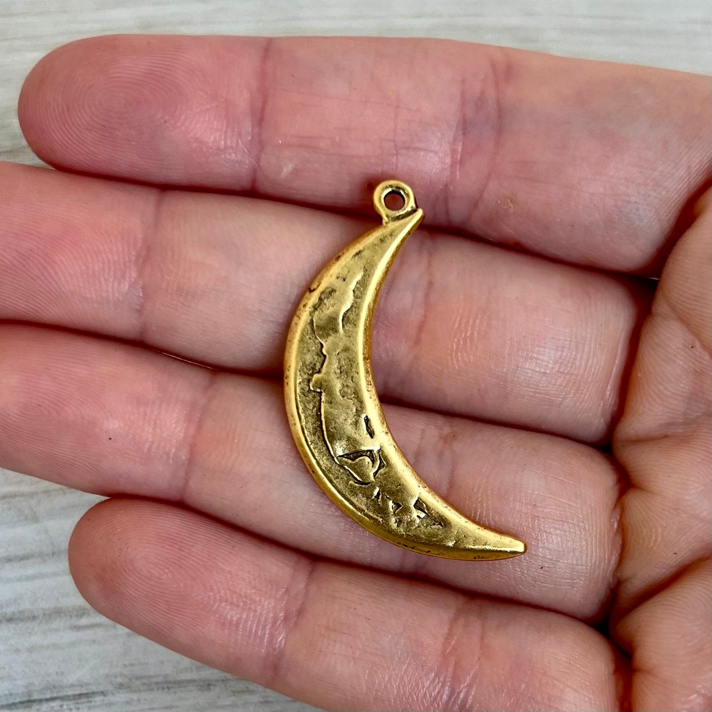 Textured Crescent Moon Pendant, Gold Celestial Charm, Artisan Jewelry Findings, GL-6306