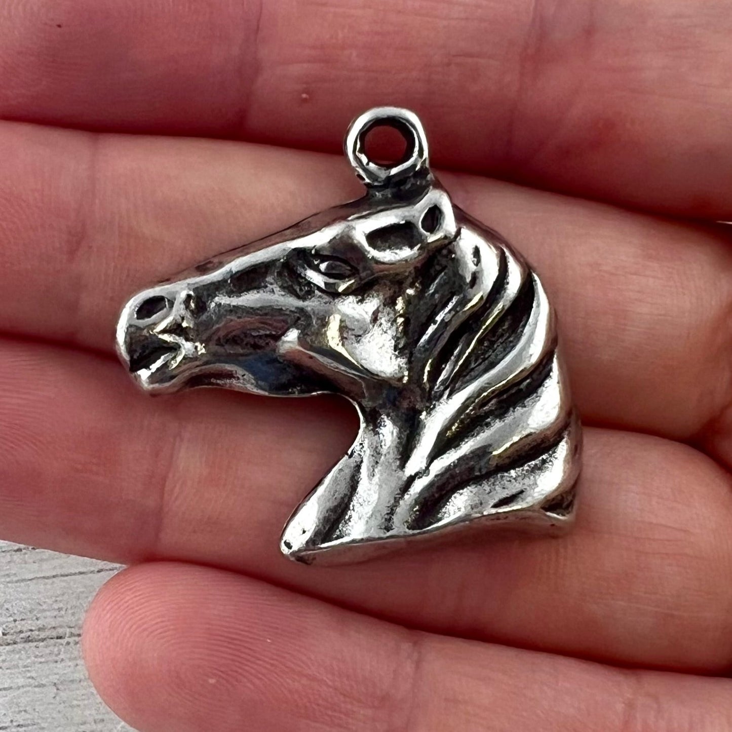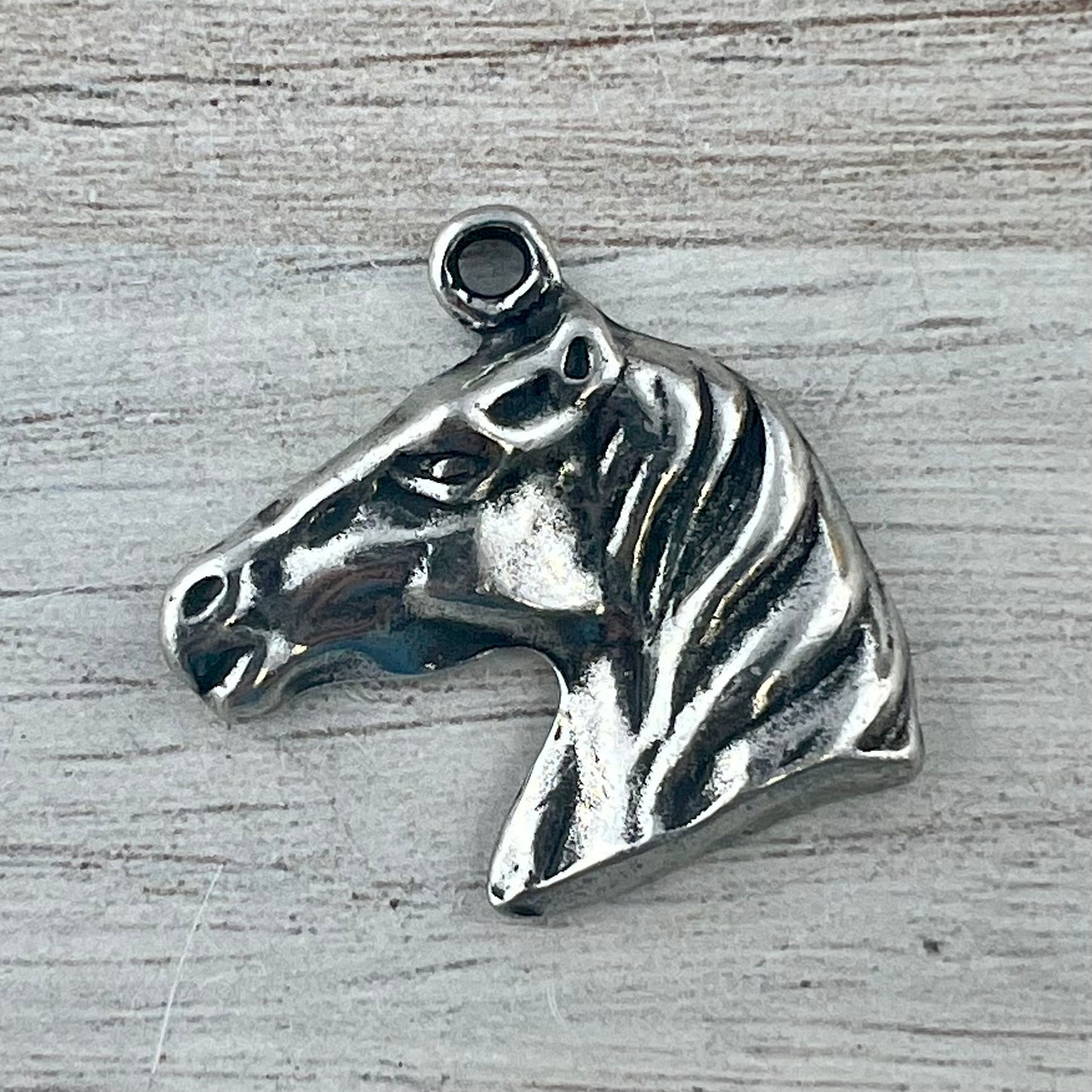 Horse Charm Pendant, Antiqued Silver Equestrian, Carsons Cove Artisan Jewelry Supplies, PW-6304