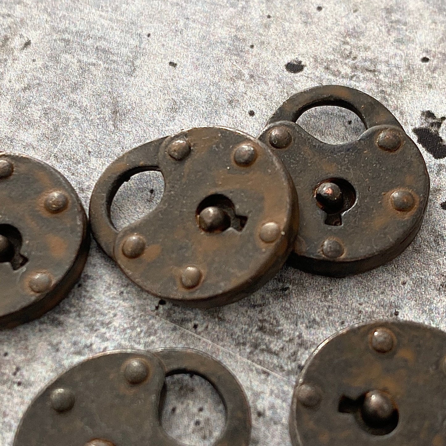 Please keep in mind that we do our best to take photos representing each piece as accurately as possible. Due to the nature of metal and patinas, colors may vary somewhat. We feel this only adds to the charm and unique nature of each piece.