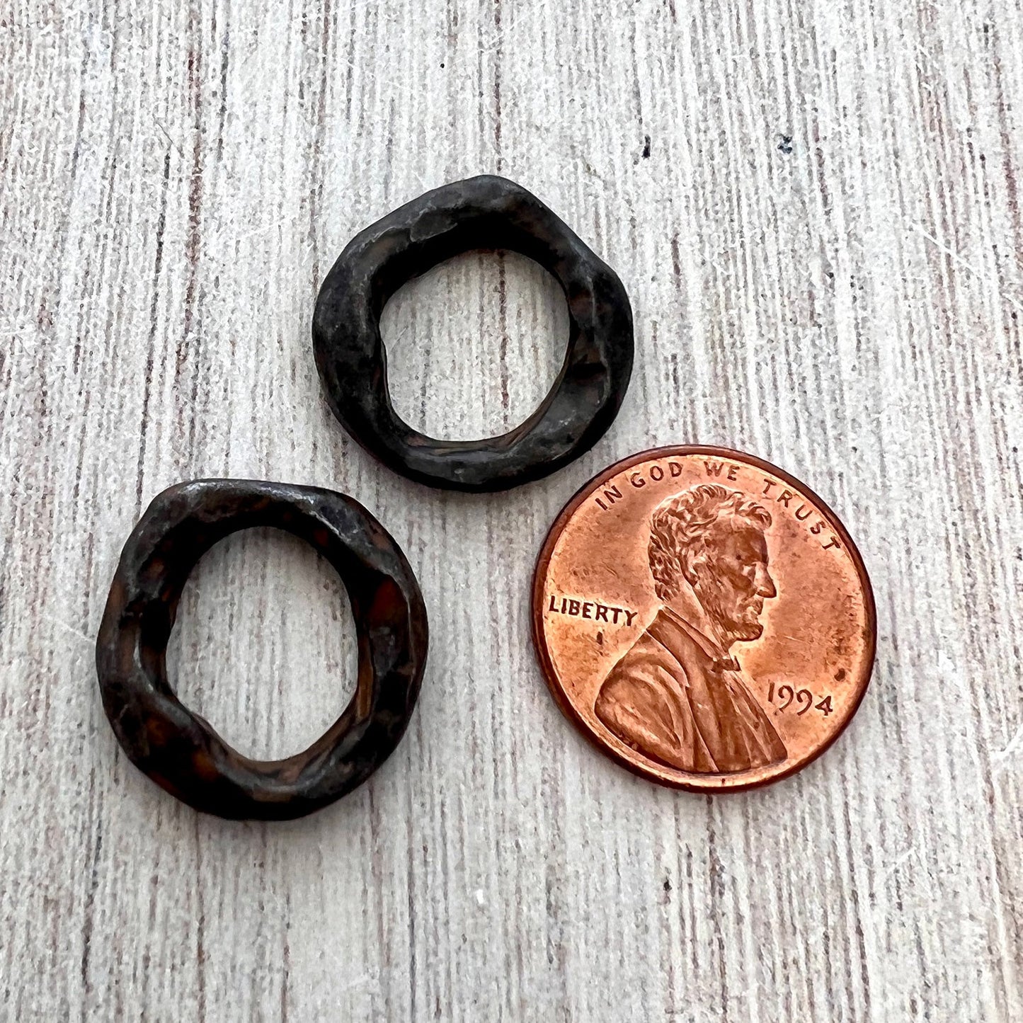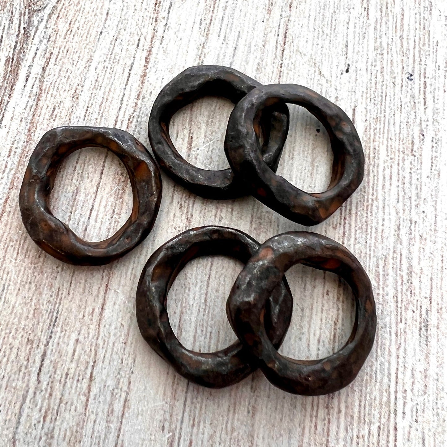 2 Organic Ring Links, Eternity Connector, Rustic Brown Pewter Oval Hoop, Circle Jewelry Supply, BR-6218