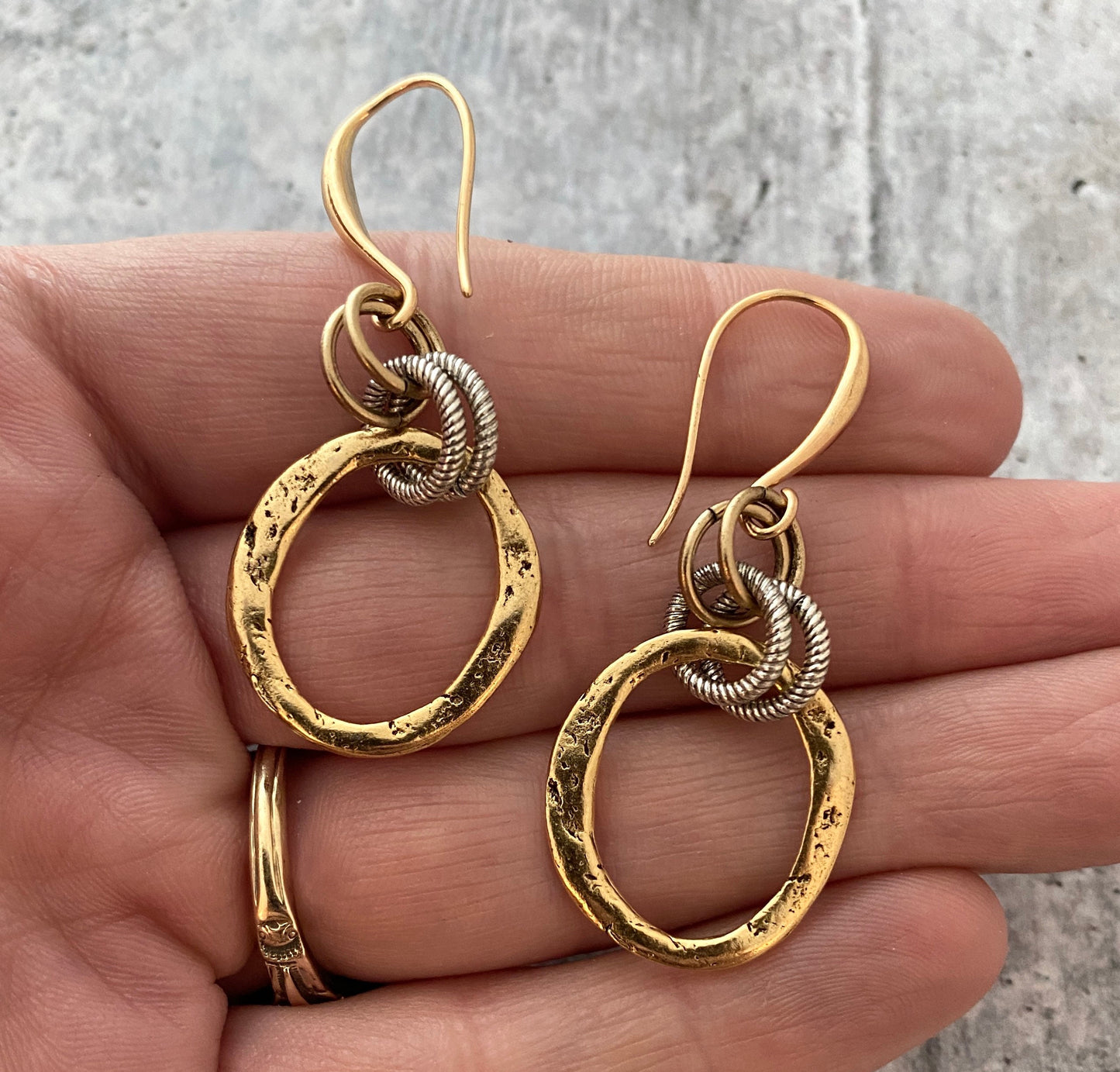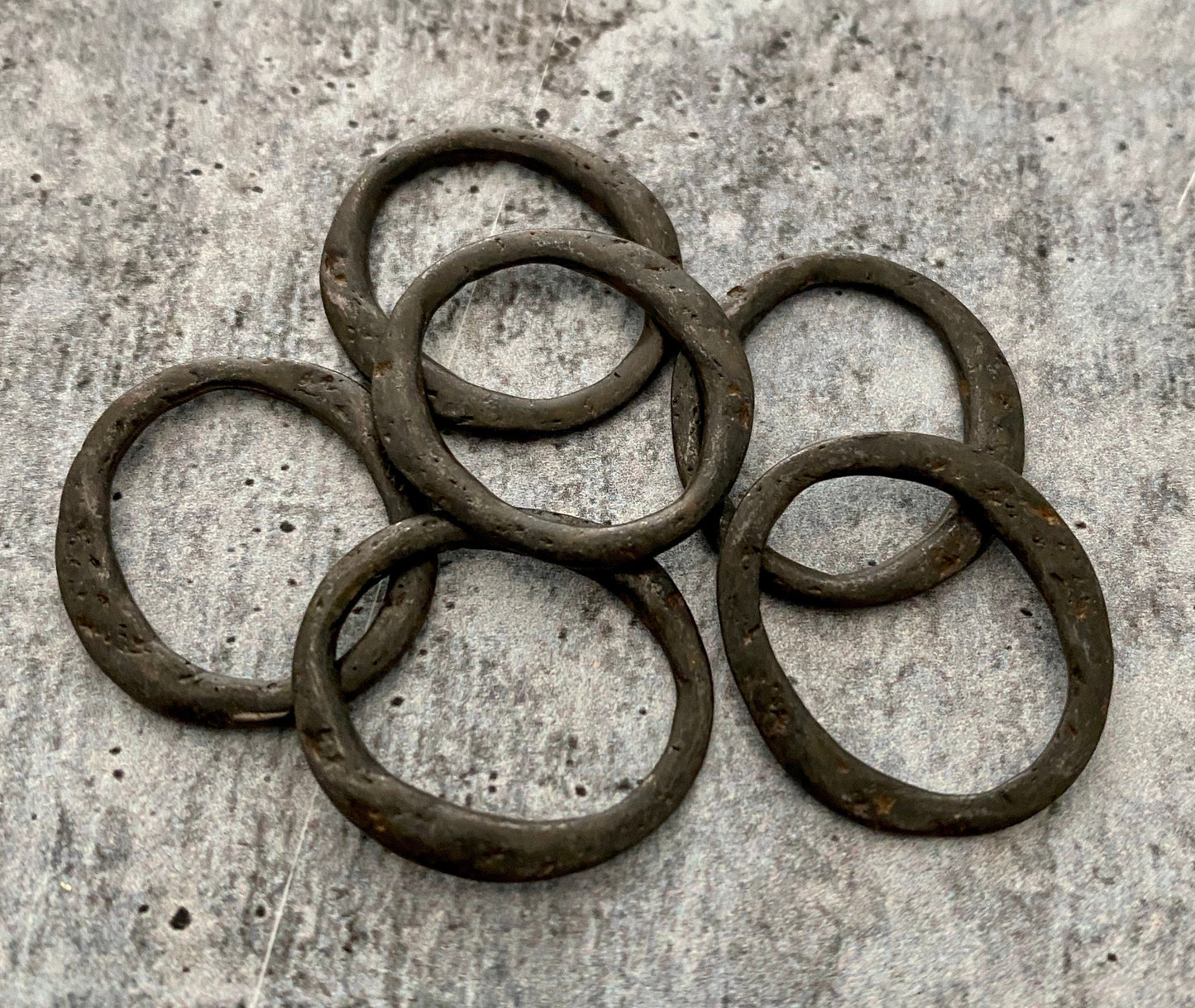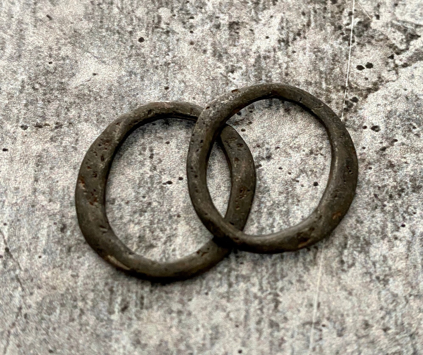 2 Organic Ring Links, Lightweight Eternity Connector, Antiqued Rustic Brown Oval Hoop, Circle Jewelry Supply, BR-6113