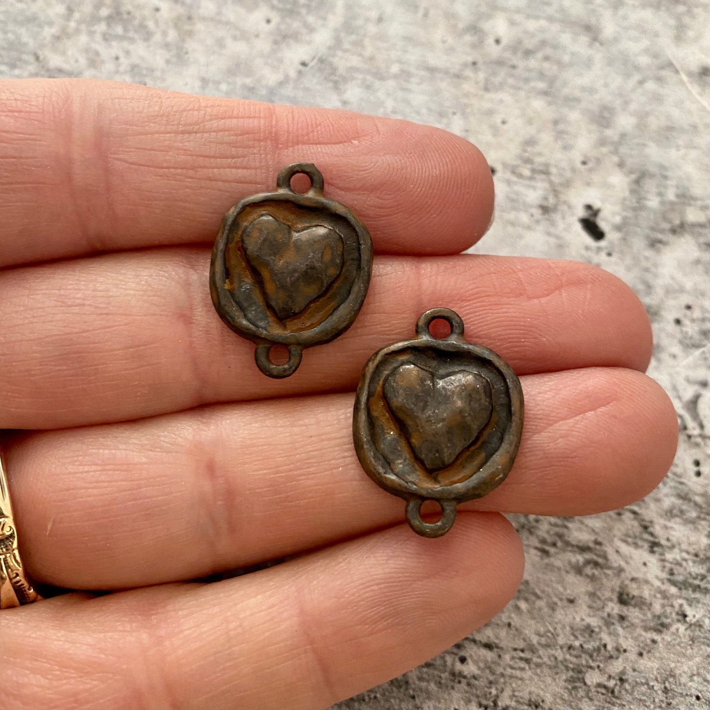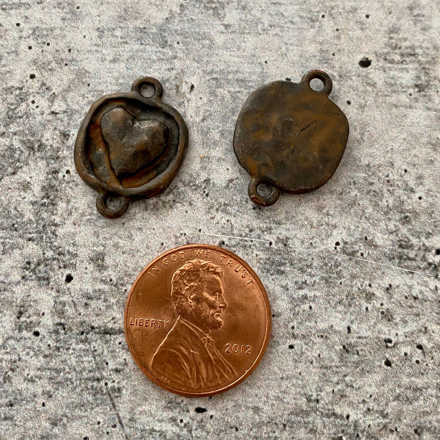 Please keep in mind that we do our best to take photos representing each piece as accurately as possible. Due to the nature of metal and patinas, colors may vary somewhat. We feel this only adds to the charm and unique nature of each piece.