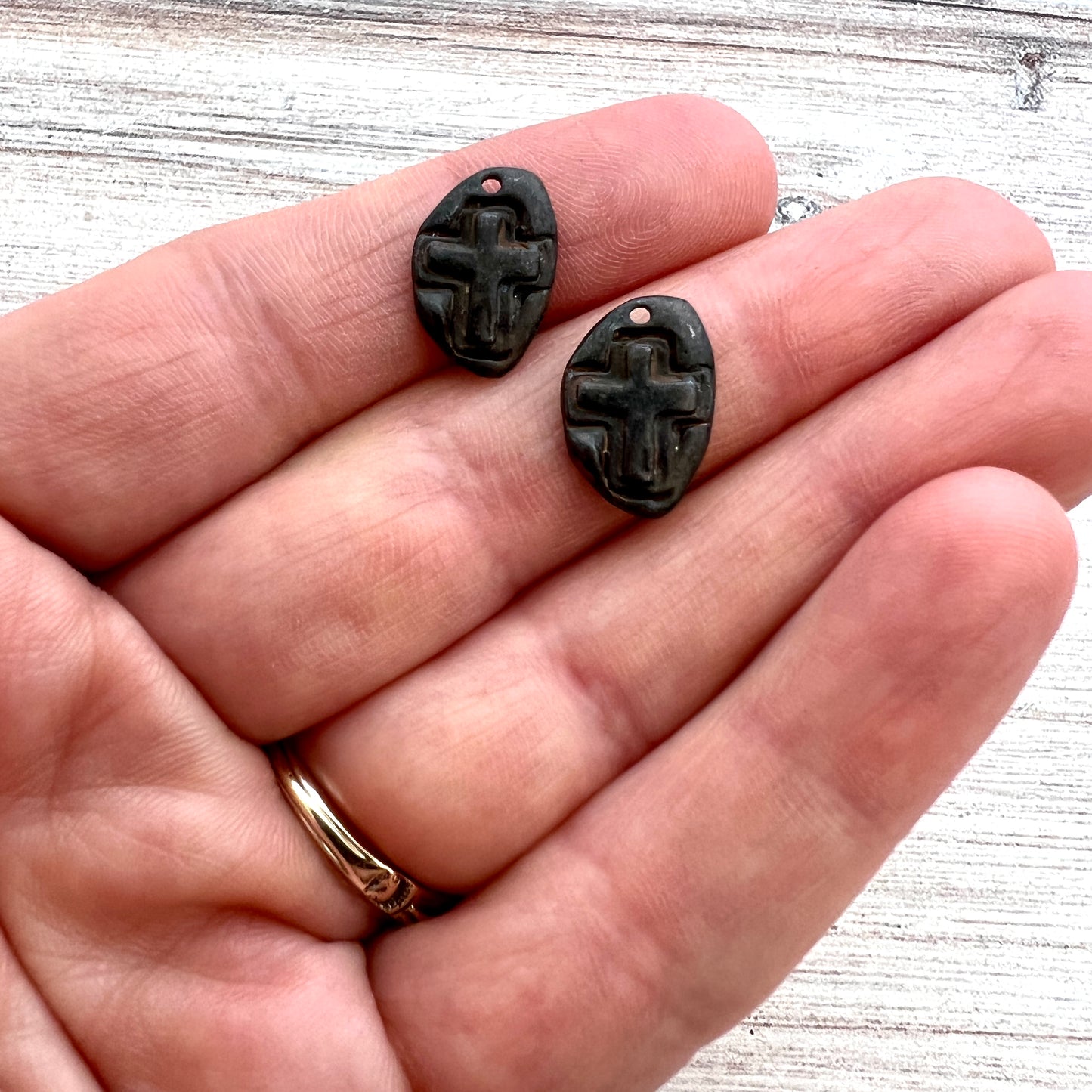 2 Hammered Small Cross Charm, Rustic Brown Artisan Cross, Religious, Spiritual Jewelry Making, BR-6226
