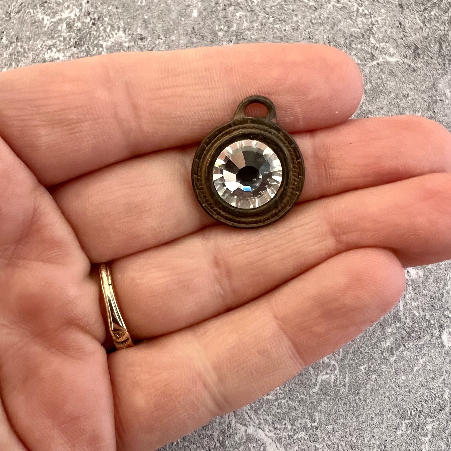 This crystal is large, sparkly, and is surrounded by a lovely frame. Add sparkle to your creations. This piece is the perfect size and weight for any jewelry - bracelet, necklace, or earrings. Use by itself or add to other charms.