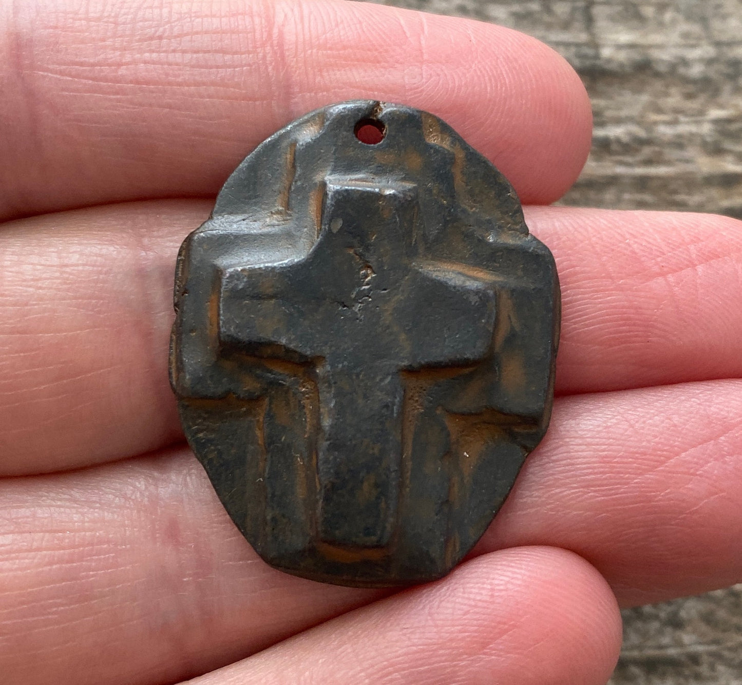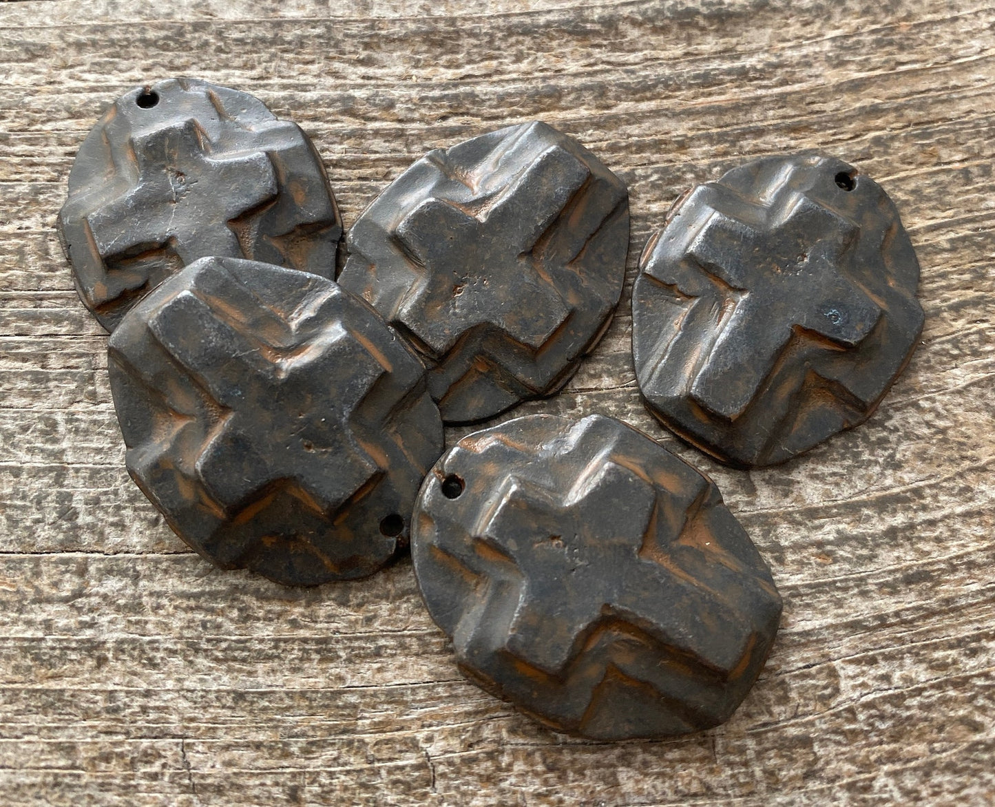 Here is a hammered cross created in a handmade, artisan style. It looks old...it was made with cracks and all; however, it's completely solid. This works beautifully for a necklace or bracelet.