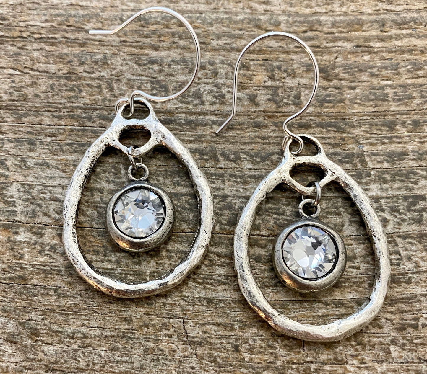 This hammered hoop looks classic and artistic at the same time. Hang a rhinestone, gemstone, or charm from the middle.