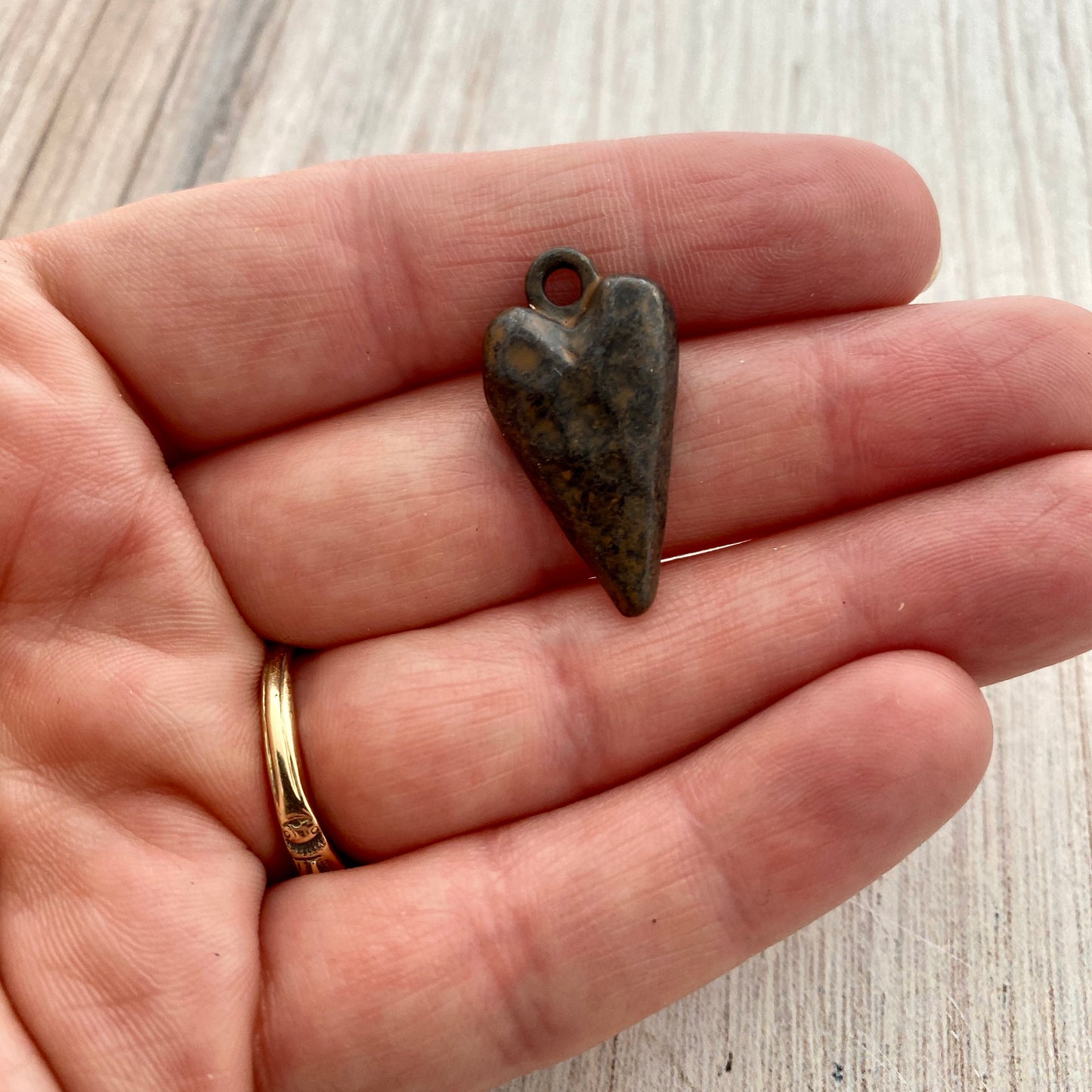 This little hammered heart charm is quite simple, but it really stands out. The texture, shape, and size make it perfect for earrings, bracelets, or necklaces.