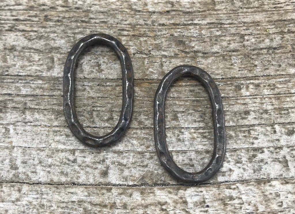 These hammered-texture oval ring connectors feel great to the touch - not too heavy and not too light. They have so many uses. Use in earrings or bracelets, or even make chain from them. They're wonderful to have on hand.