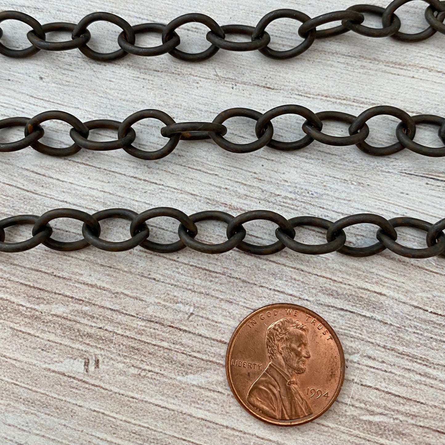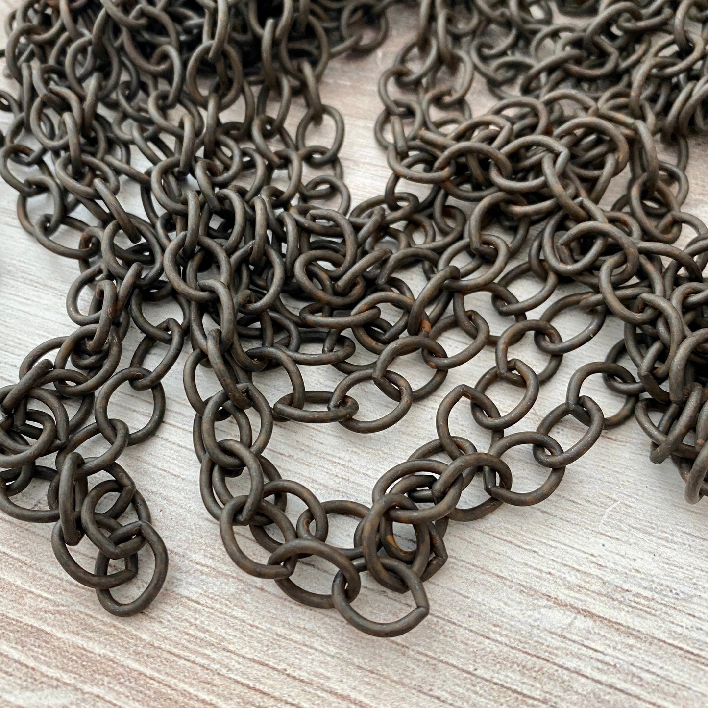 This chain is thick and sturdy. The links of this textured cable chain have a bit of an oval shape. It has a smooth finish. This chain is antiqued like the rest of my gold; however, because it has a completely smooth texture, it doesn't pick up as much of the antique. Use this for a charm bracelet, or triple it up for an amazing statement necklace! Get creative and use the chain links on earrings!