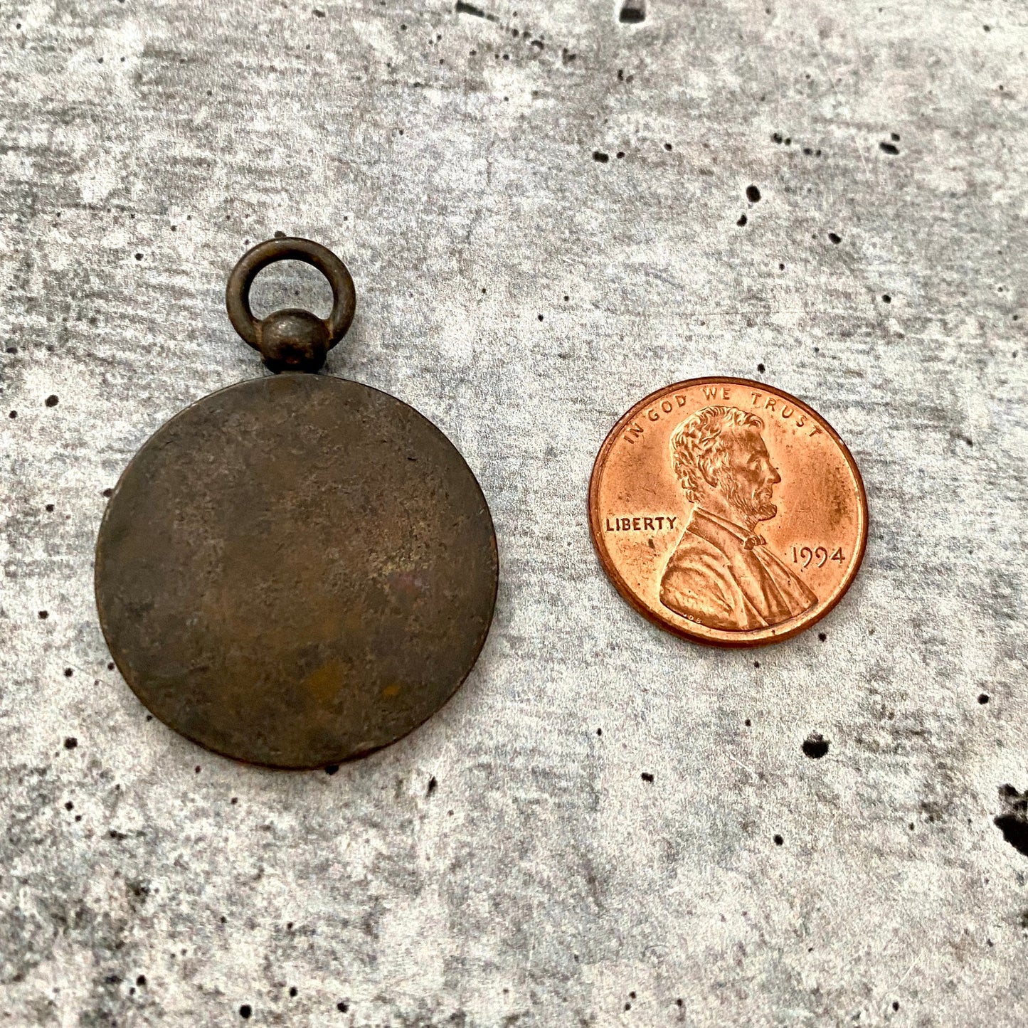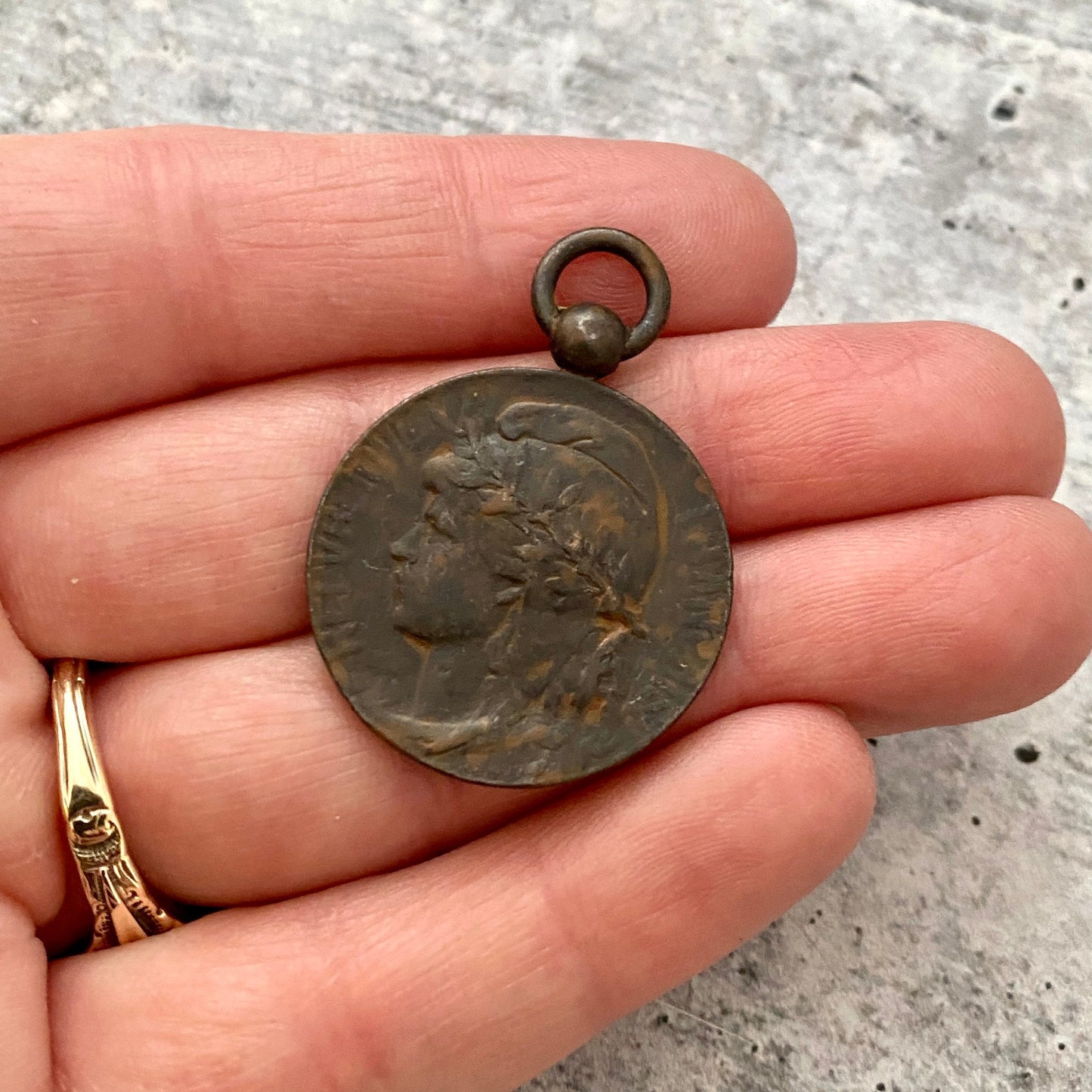 This French medal replica depicts Marianne, who is the personification of the French Republic since the revolution. She stands for liberty, equality, and reason. Similar to the American Statue of Liberty, she is a portrayal of the Goddess of Liberty. This medal is medium-sized, which lends itself to bracelets, necklaces, and large earrings. The writing says, "Republique Francaise."