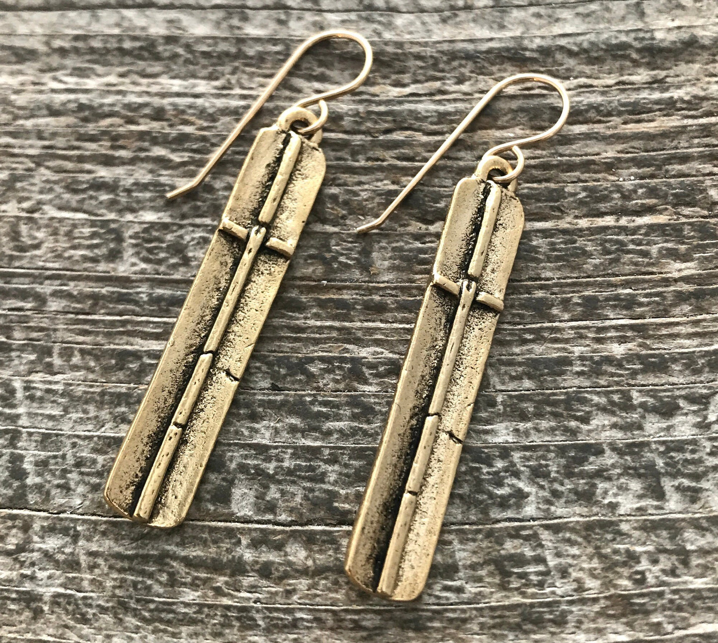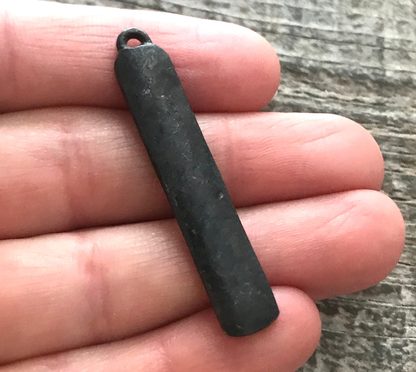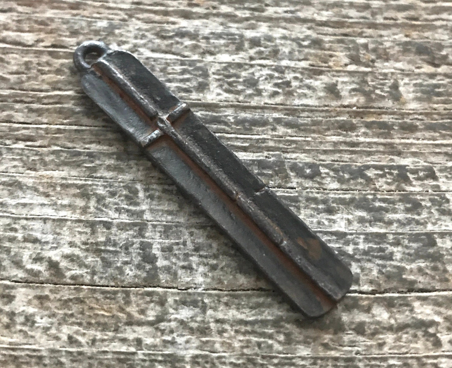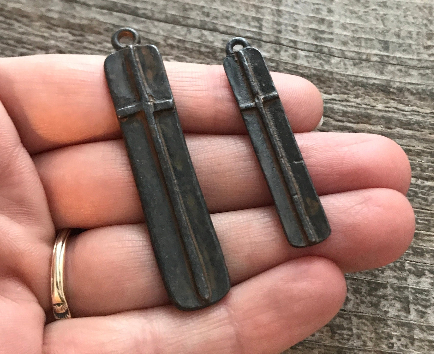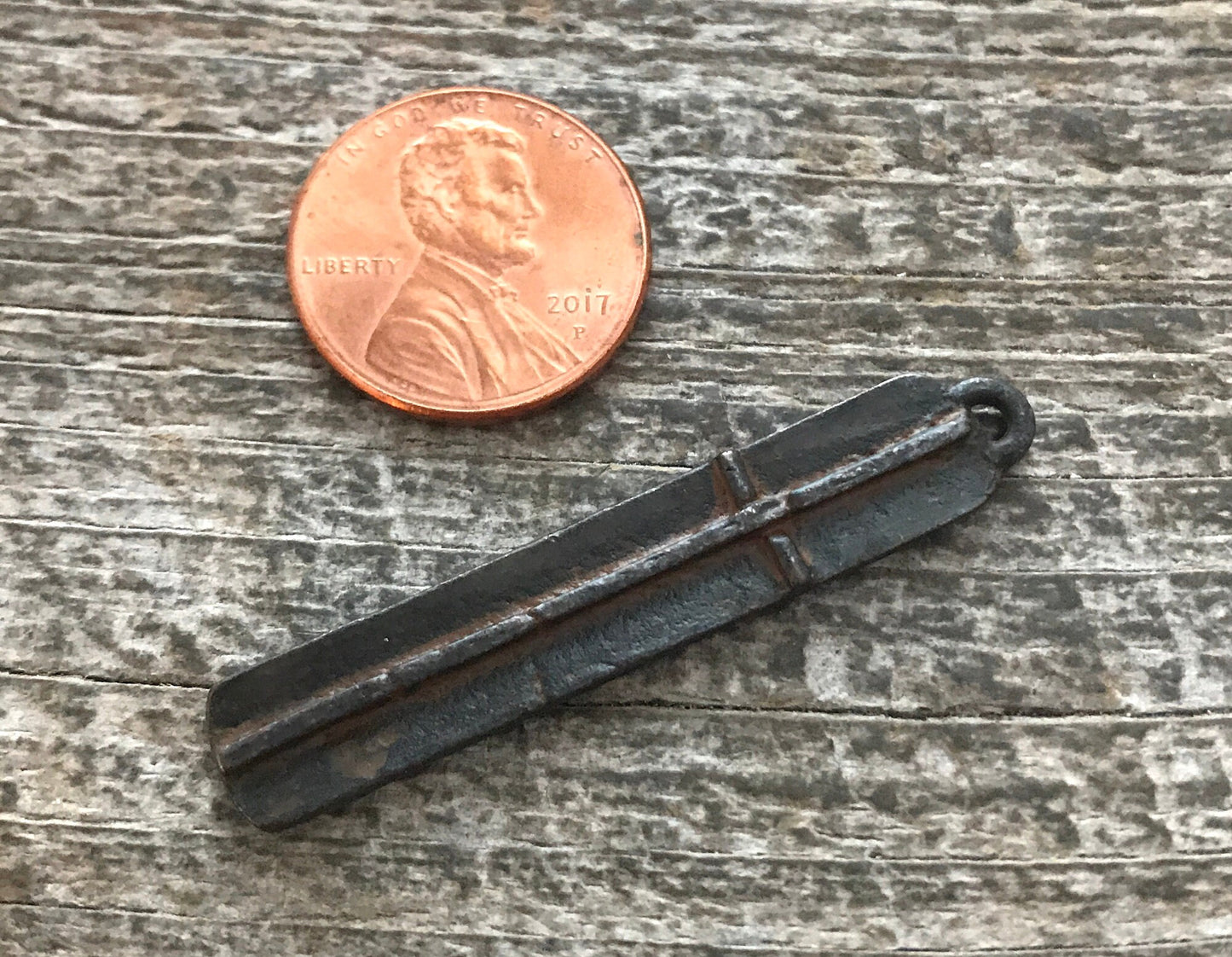 Medium Brown Cross Pendant, Long Skinny Modern Bar Rectangle Cross, Rustic Brown Cross for Jewelry Making Supplies, BR-6142