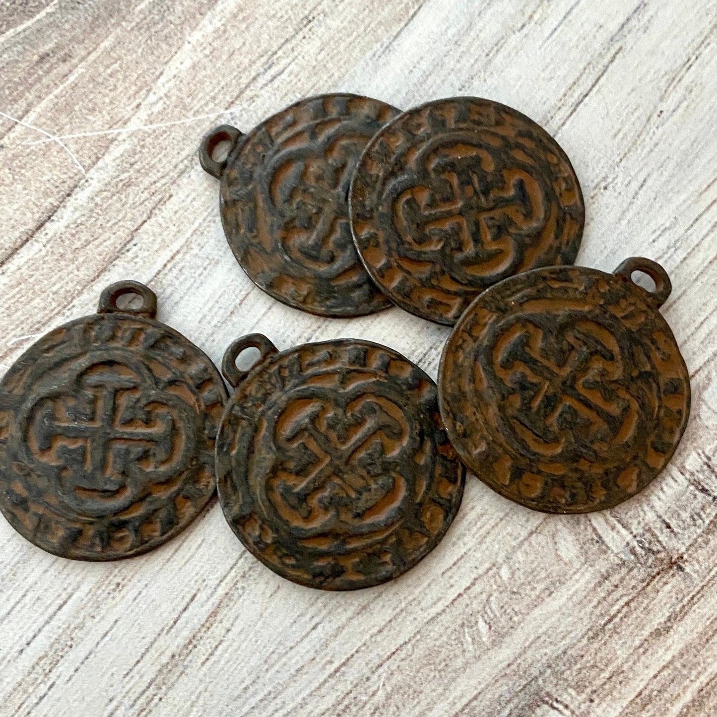 This Spanish coin was modeled after a coin found in a Spanish shipwreck, deep in the ocean. I love the Old World beauty that it adds to jewelry designs. This piece serves as an excellent necklace or bracelet charm, and it's lightweight enough to use for earrings.